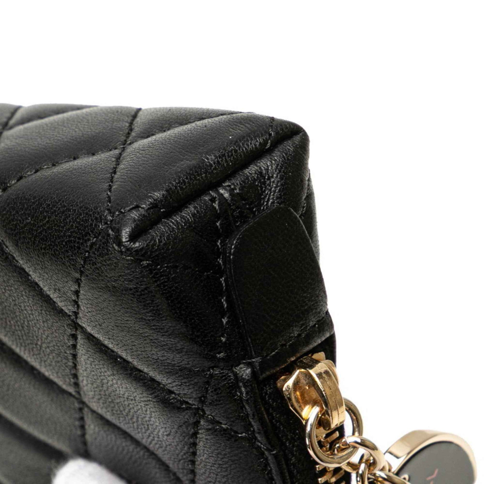 CHANEL Matelasse Coco Mark Porte Bonheur Wallet/Coin Case in Black Lambskin for Women