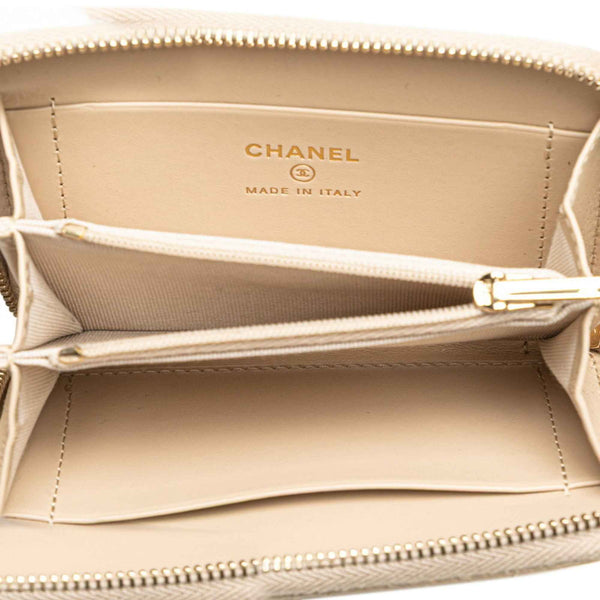CHANEL Matelasse Coco Mark Rhinestone Wallet/Coin Case Beige Caviar Leather Women\'s
