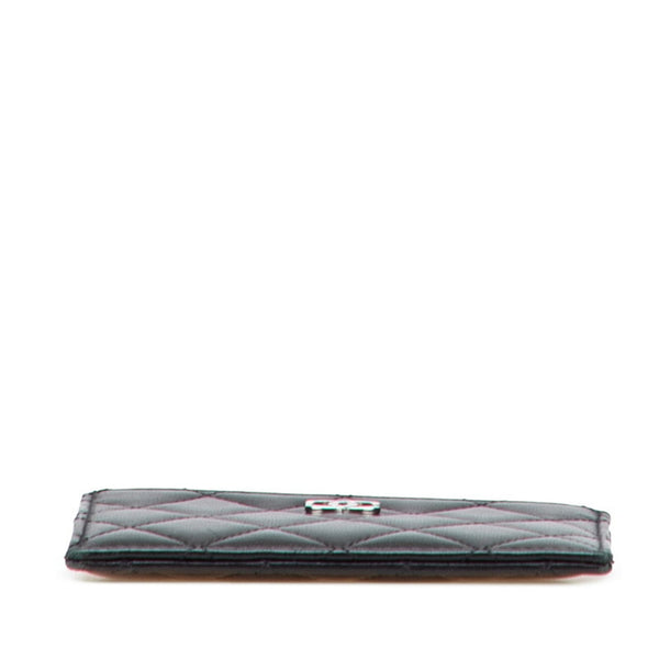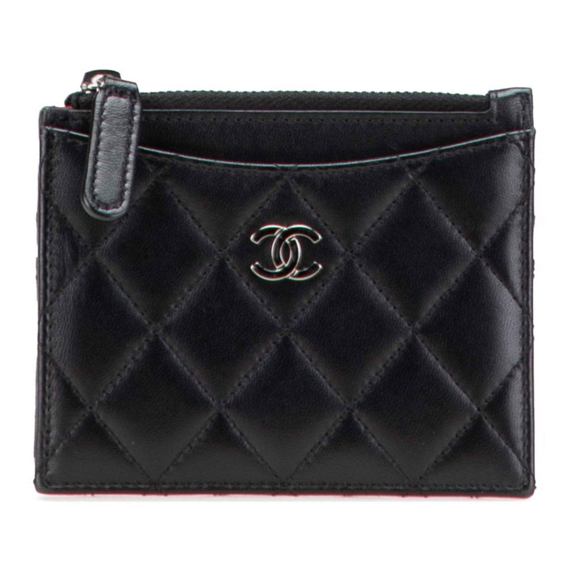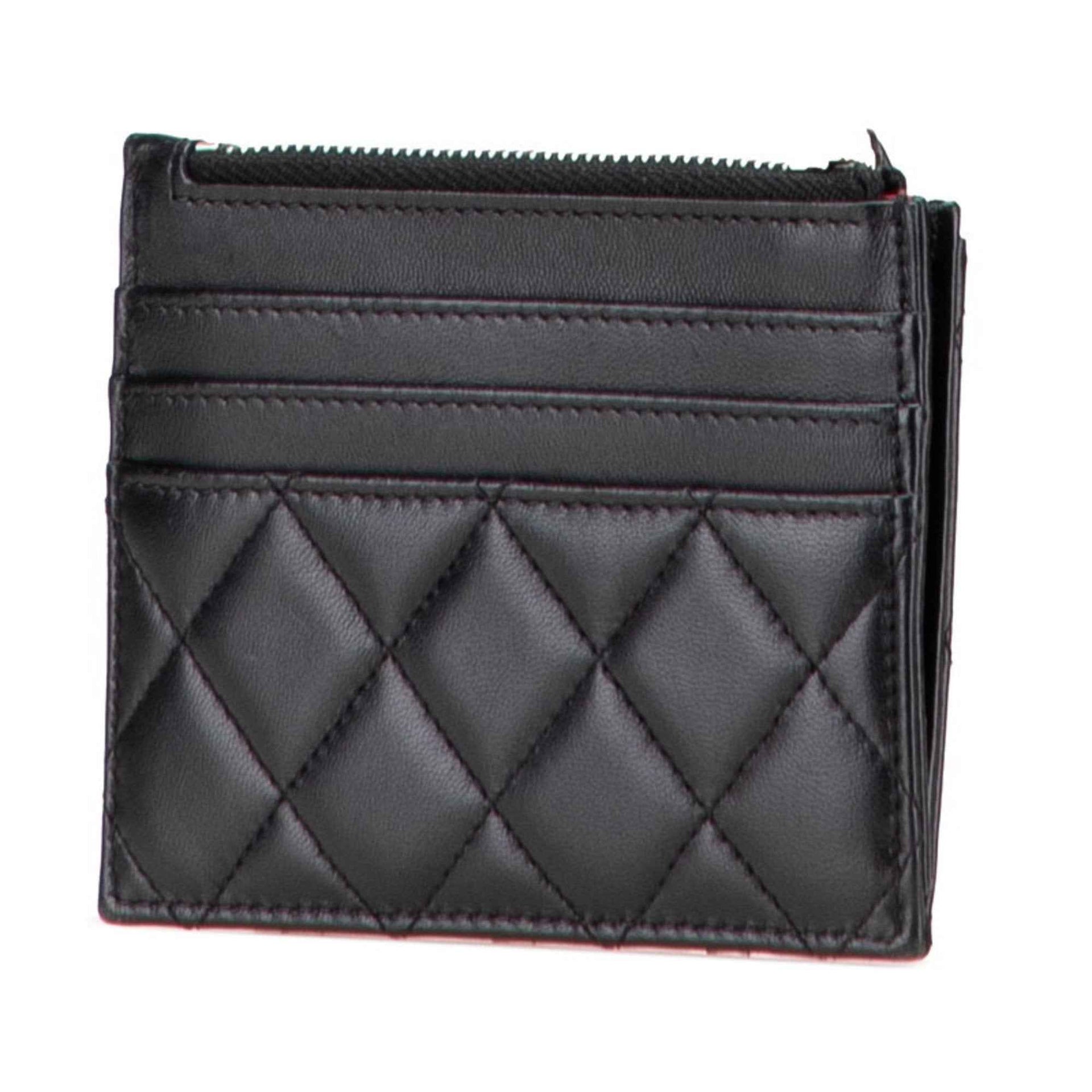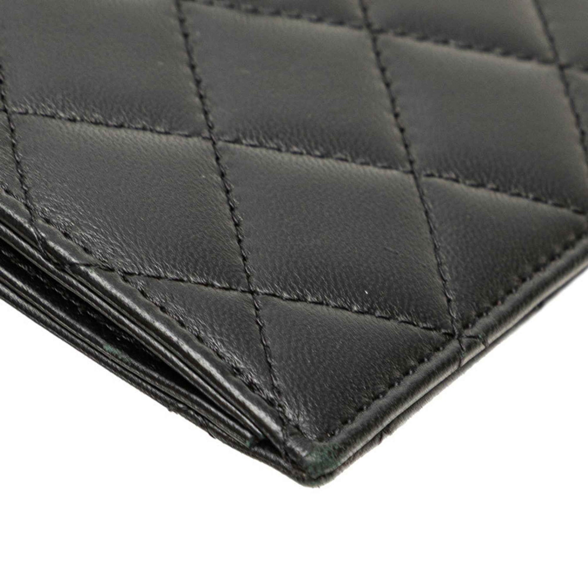 CHANEL Matelasse Coco Mark Silver Hardware Wallet/Coin Case/Business Card Case/Card Case Fragment Black Lambskin Women\'s