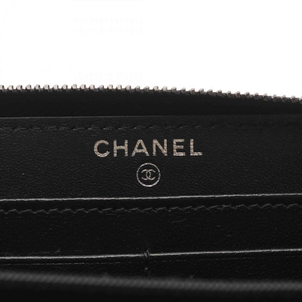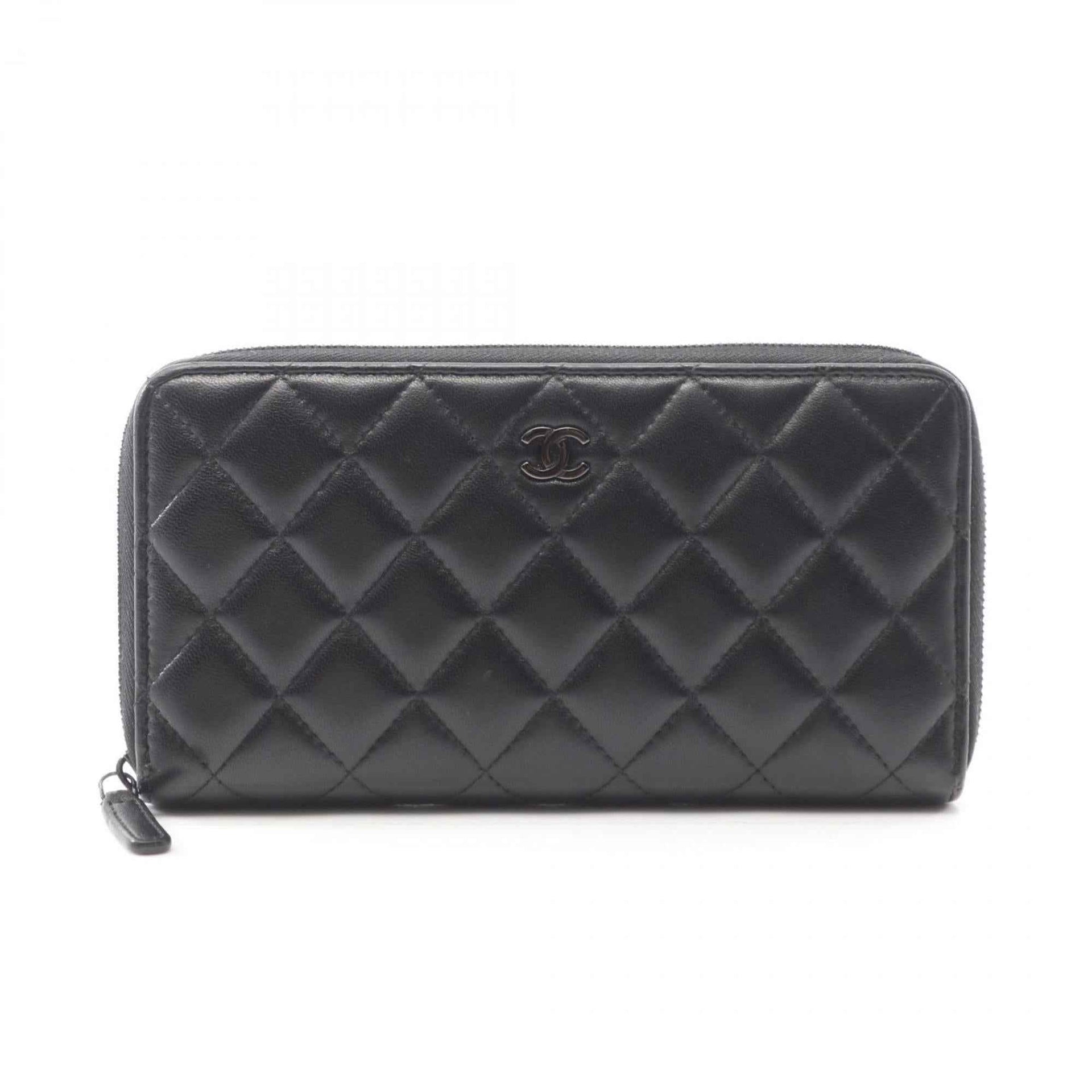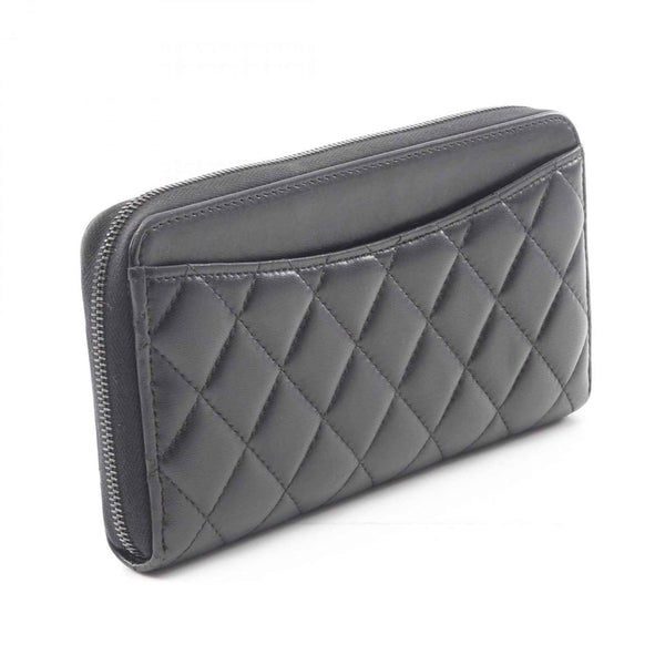 CHANEL Matelasse Round Long Wallet, Lambskin Leather, Women\'s, Black