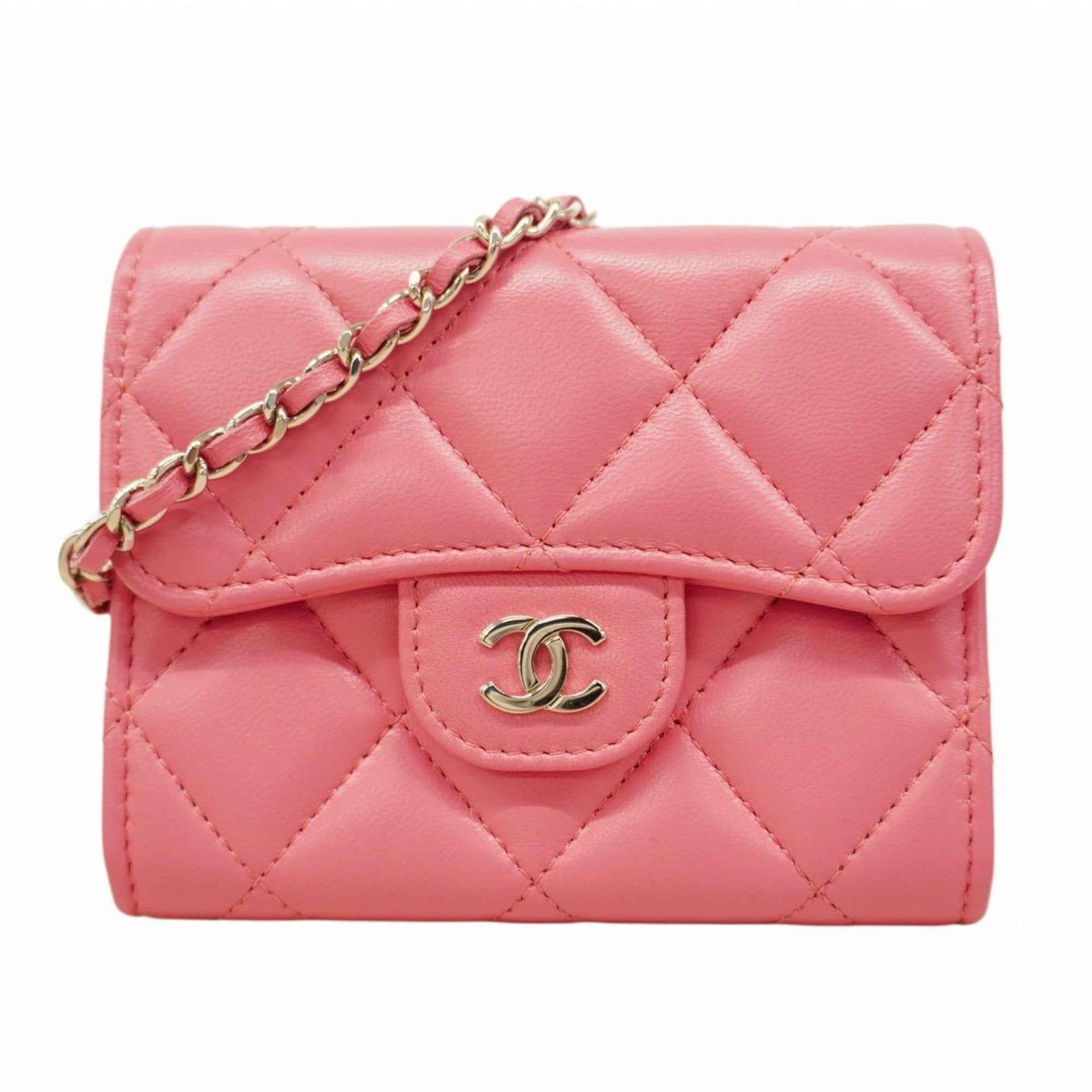 Chanel Matelasse Shoulder Wallet with Chain Bag, Lambskin, Pink, Women\'s