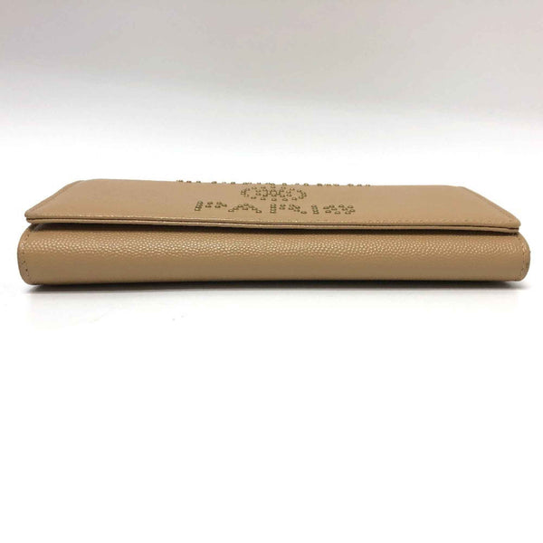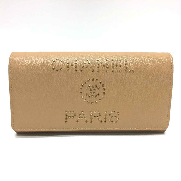 CHANEL Studded Logo Bifold Long Wallet in Caviar Leather, Beige