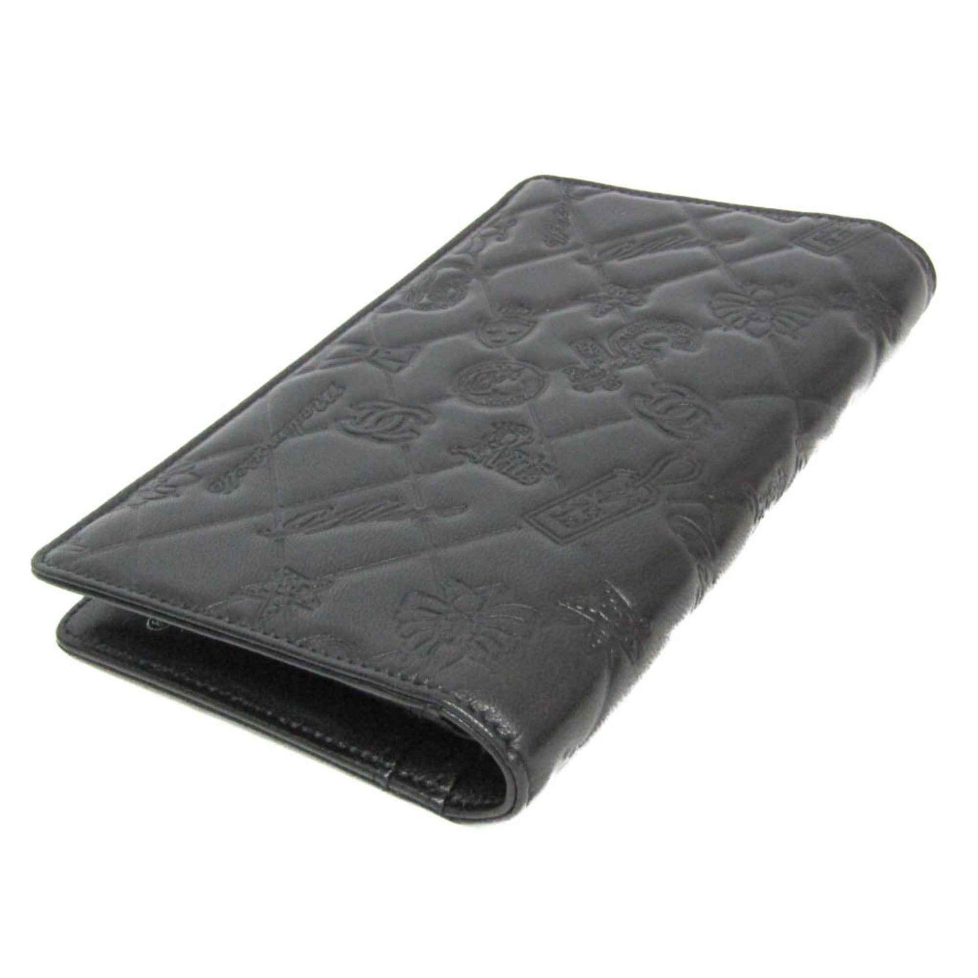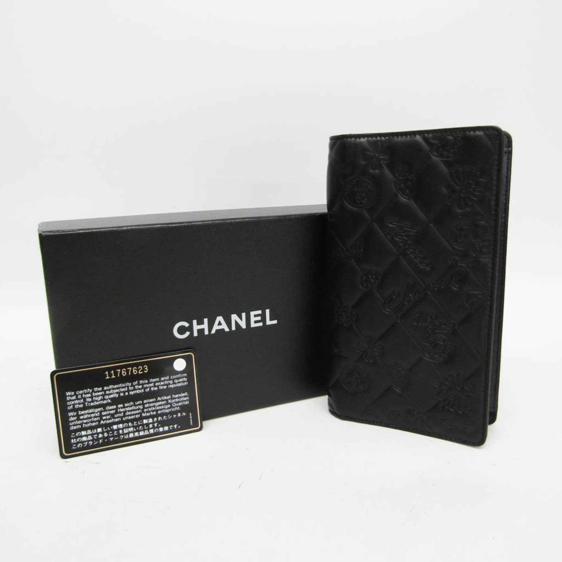Chanel Symbol Charm Women\'s Leather Long Wallet (bi-fold) Black