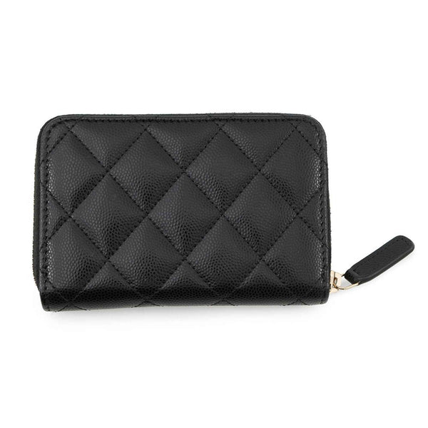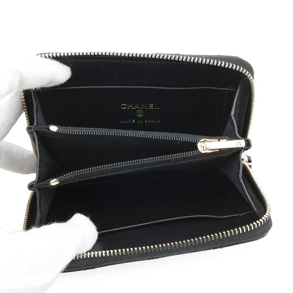 Chanel Wallet/Coin Case, Coco Mark Matelasse Zip Coin Purse with Rhinestones and Caviar Leather, AP4341, Black