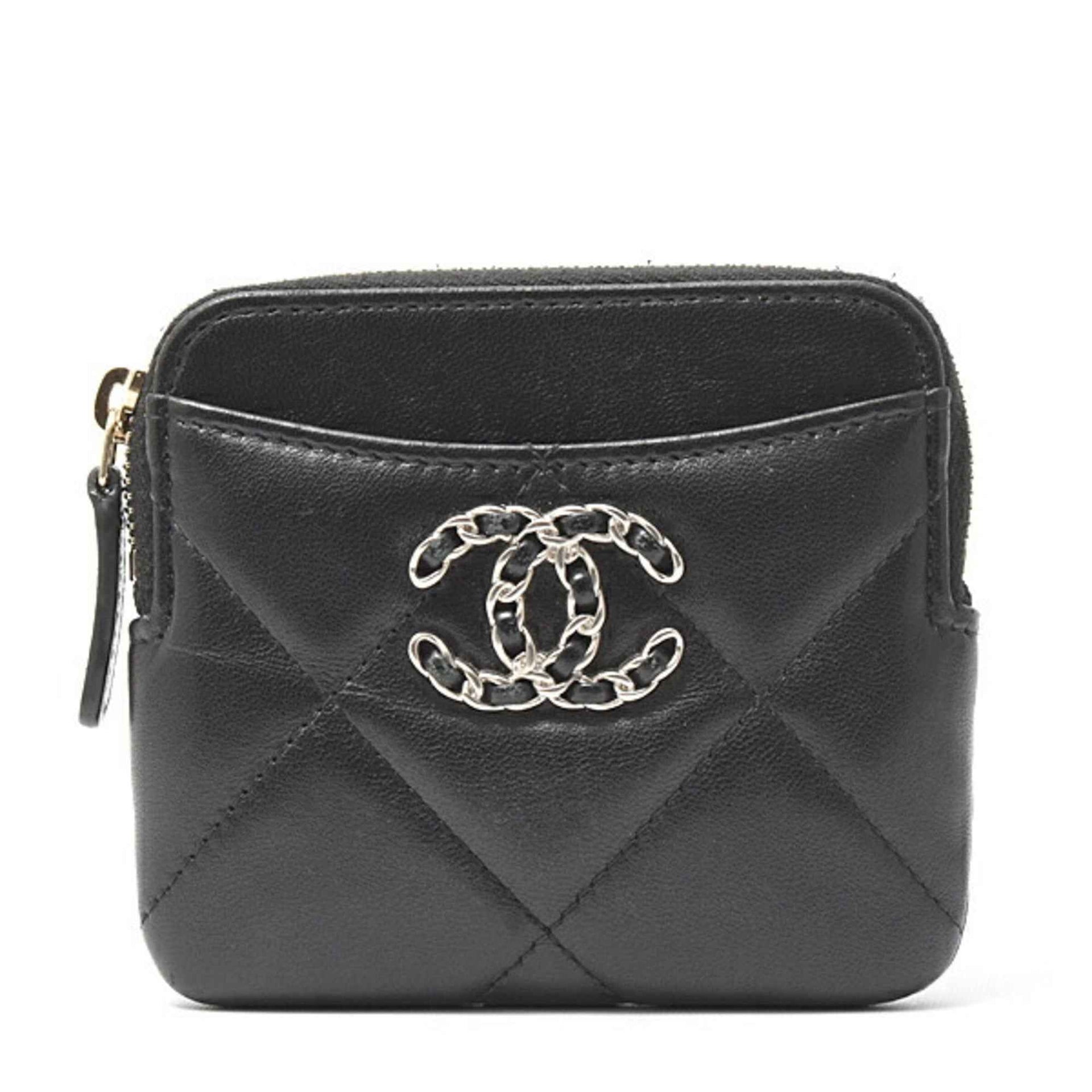 Chanel Women\'s Wallet, 19 Zip Coin Purse, Matelasse Lambskin, Black, CHANEL AP2086