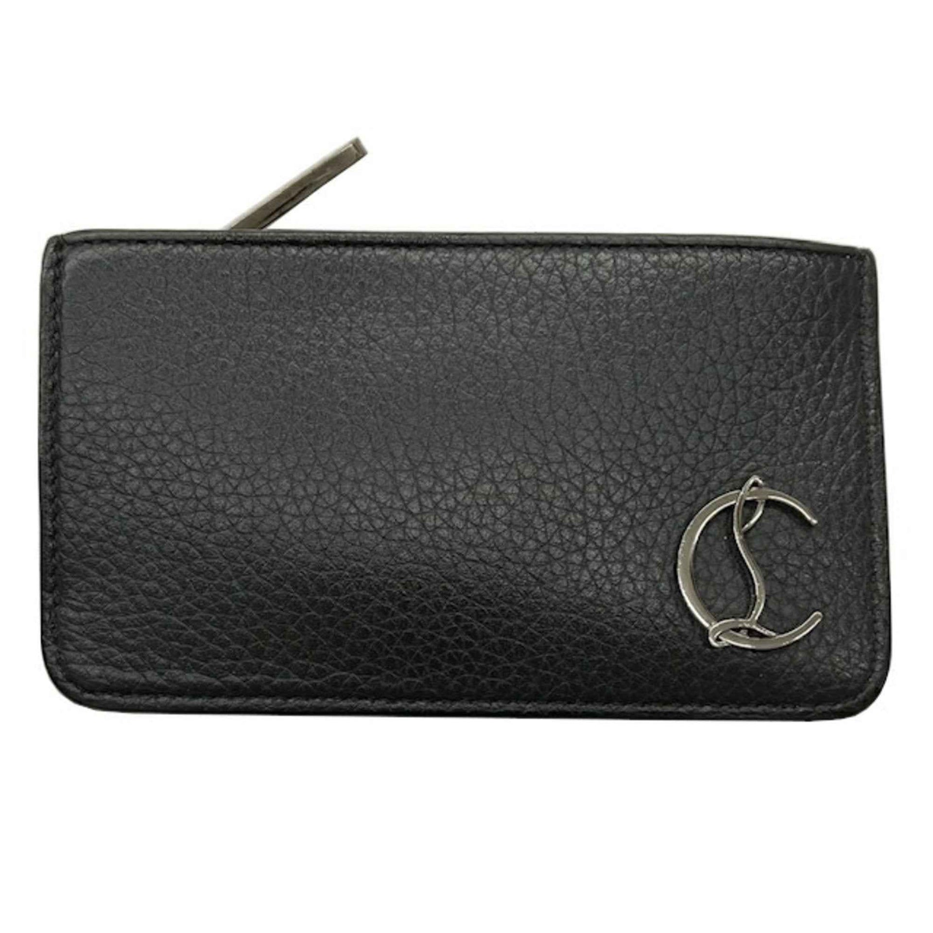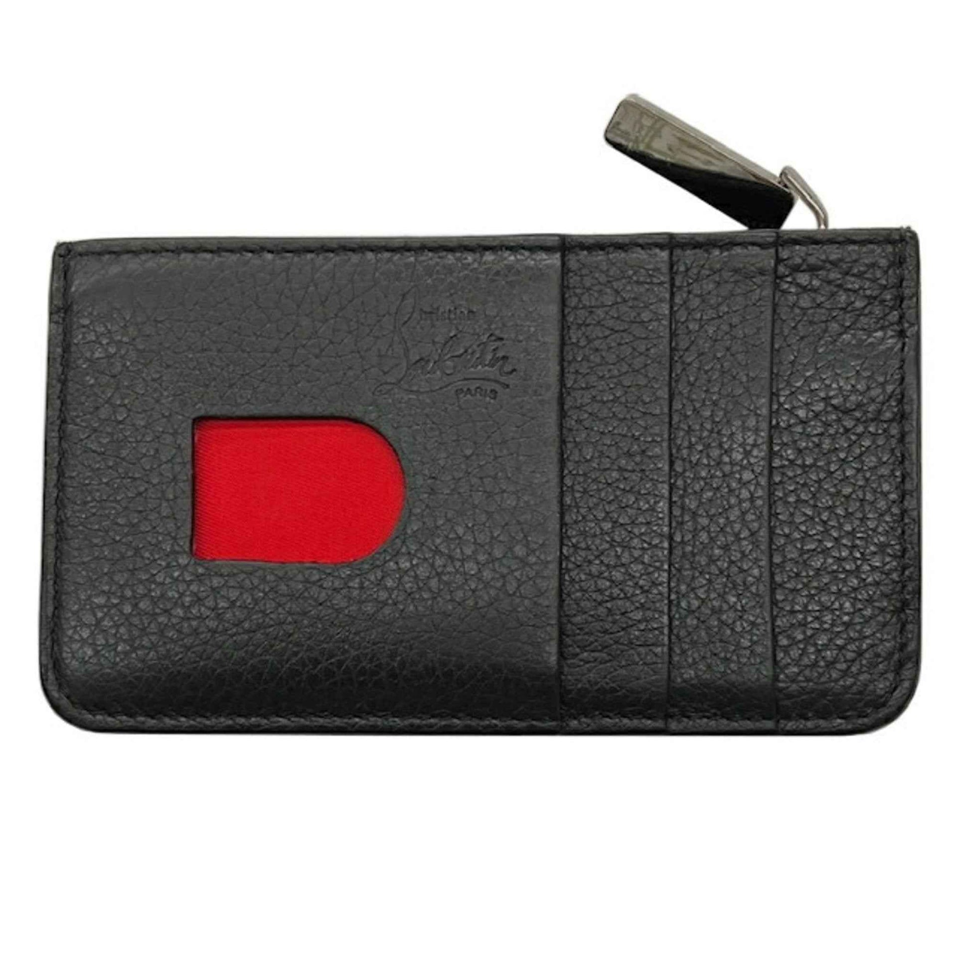 Christian Louboutin coin and business card holder/card case in black red leather for men women