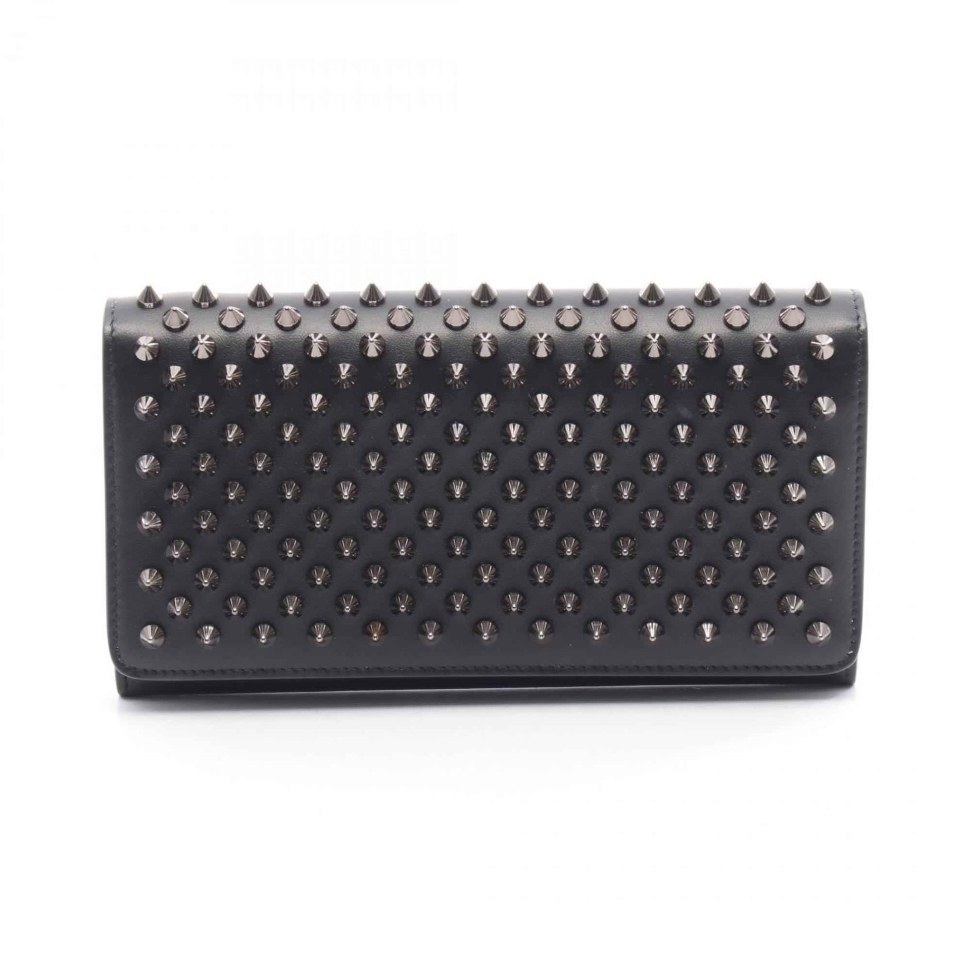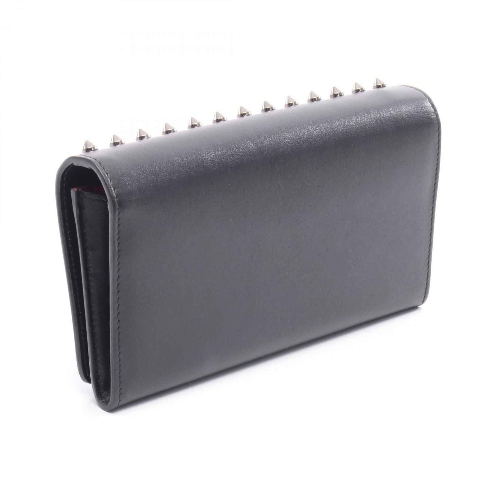 Christian Louboutin MACARON WALLET Bi-fold Long Wallet, Leather, Women\'s, Black, 1175077