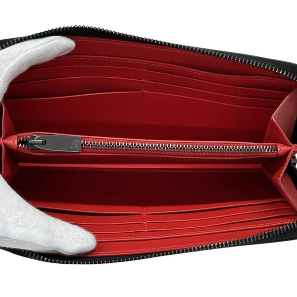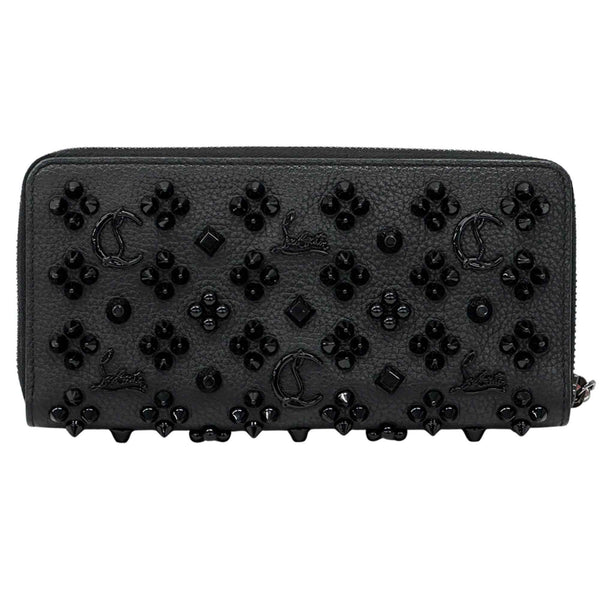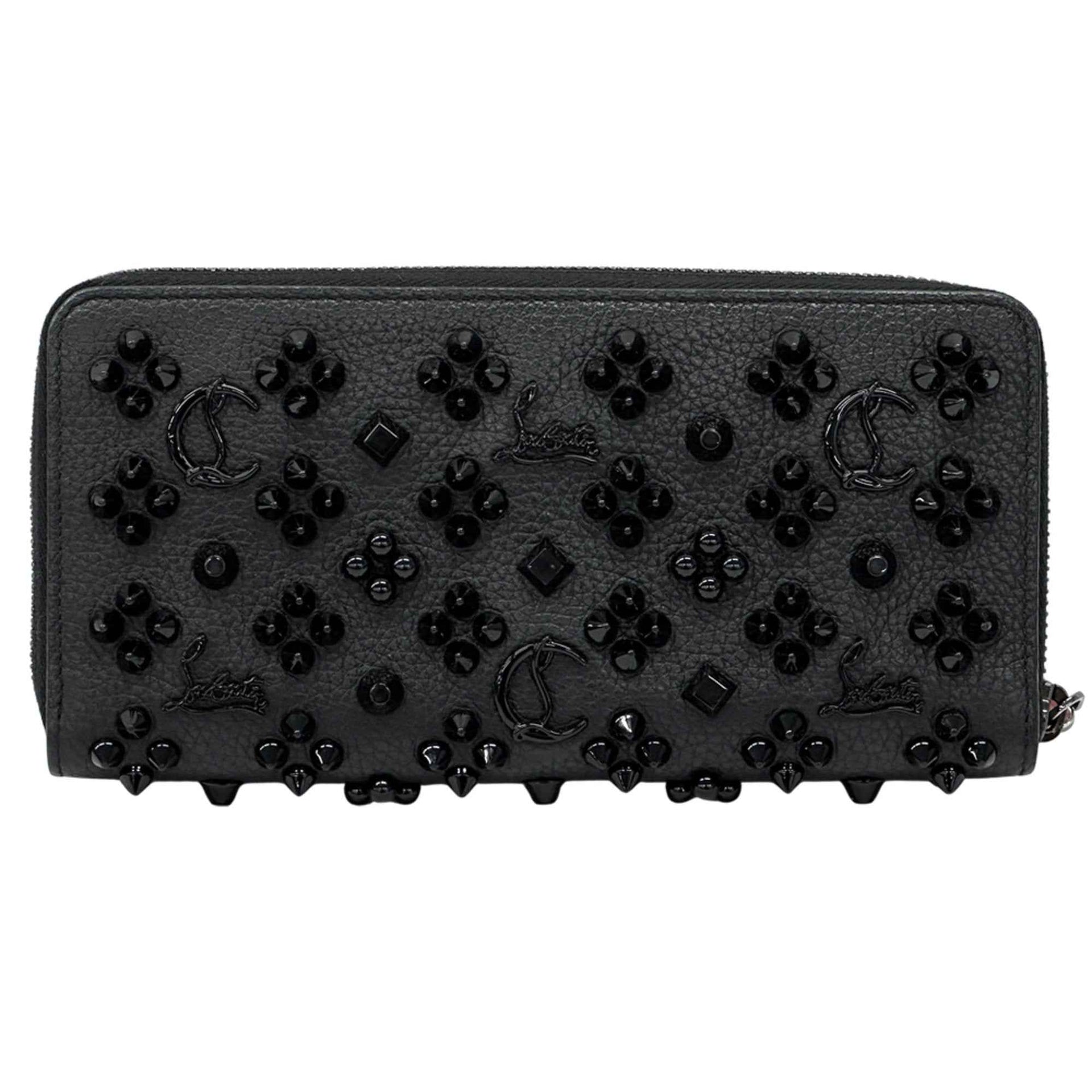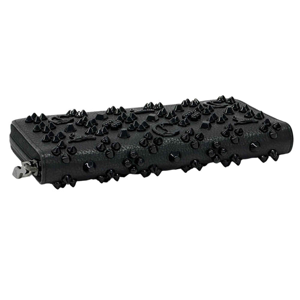 Christian Louboutin Men\'s Brand Long Wallet Leather Black Red Silver Hardware Studs Logo Icon
