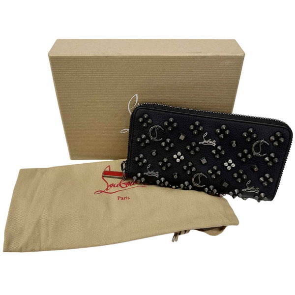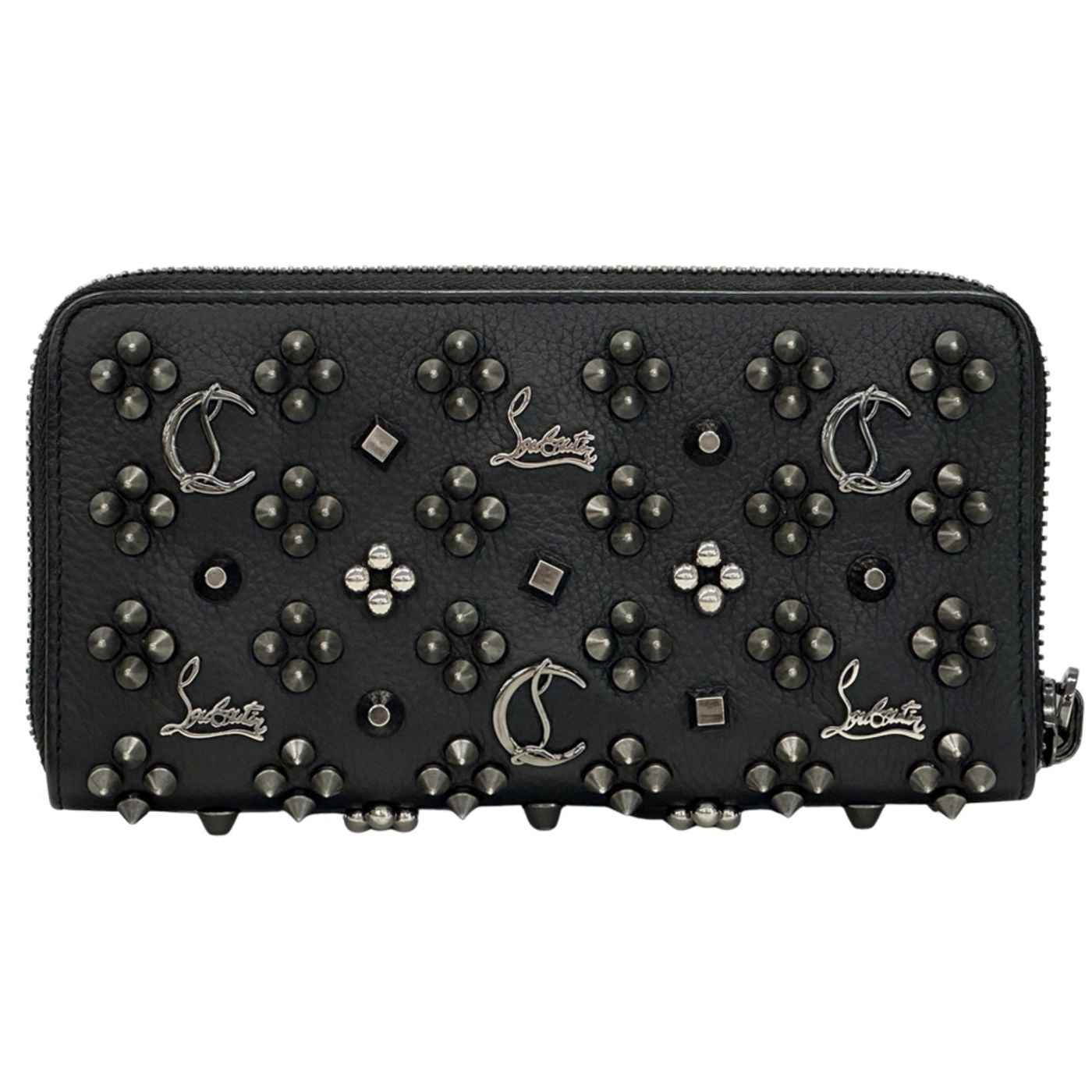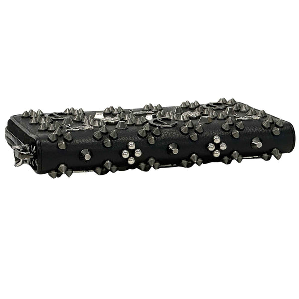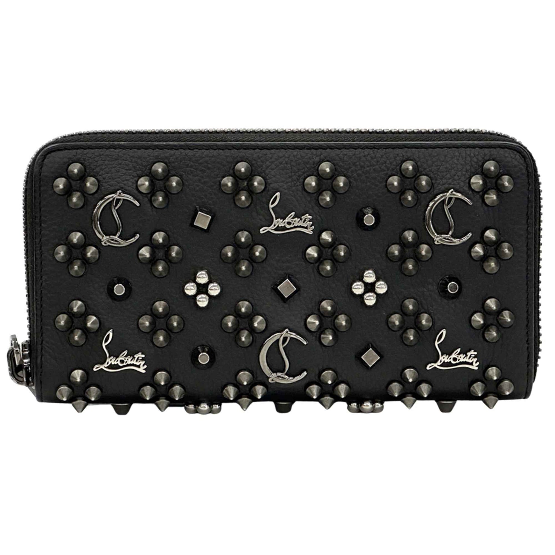 Christian Louboutin Men\'s Long Wallet, Leather, Black, Red, Silver Hardware, Studs, Logo, Icon