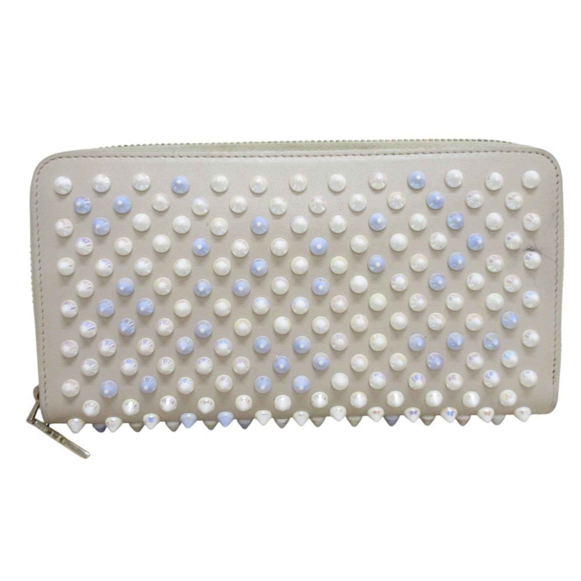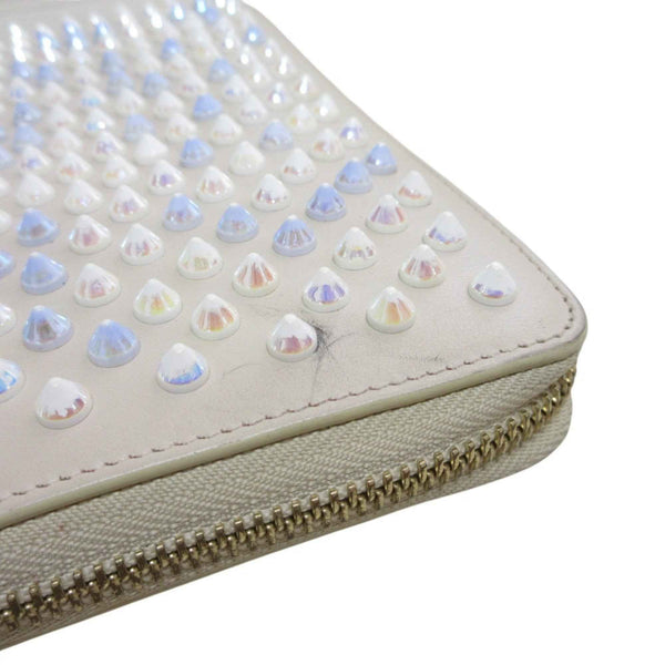 Christian Louboutin Spiked Studs Round Zip Long Wallet, Aurora Beige, Women\'s