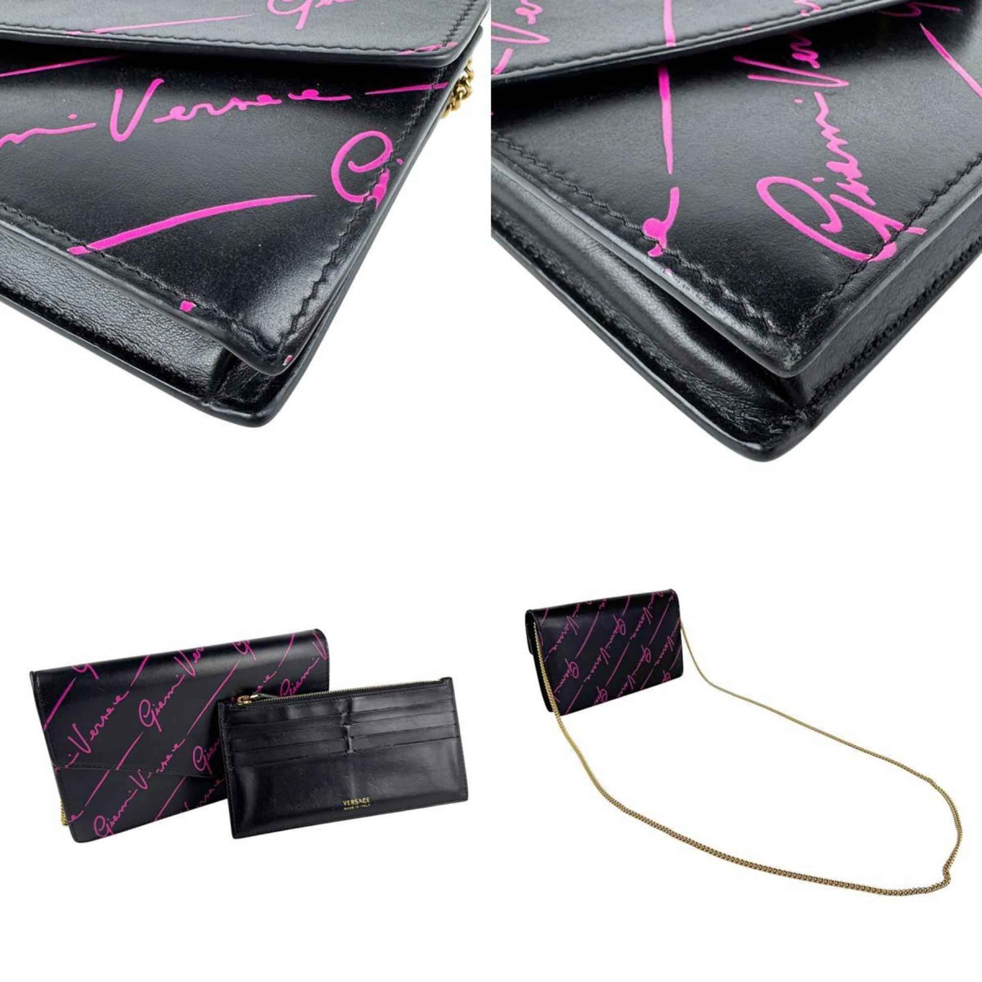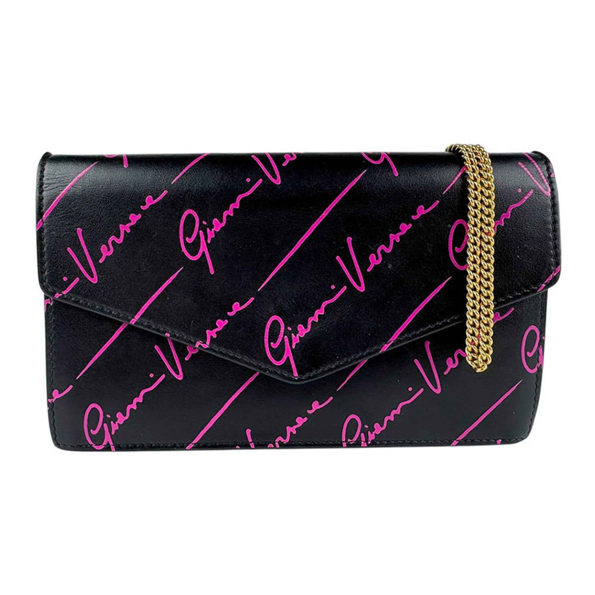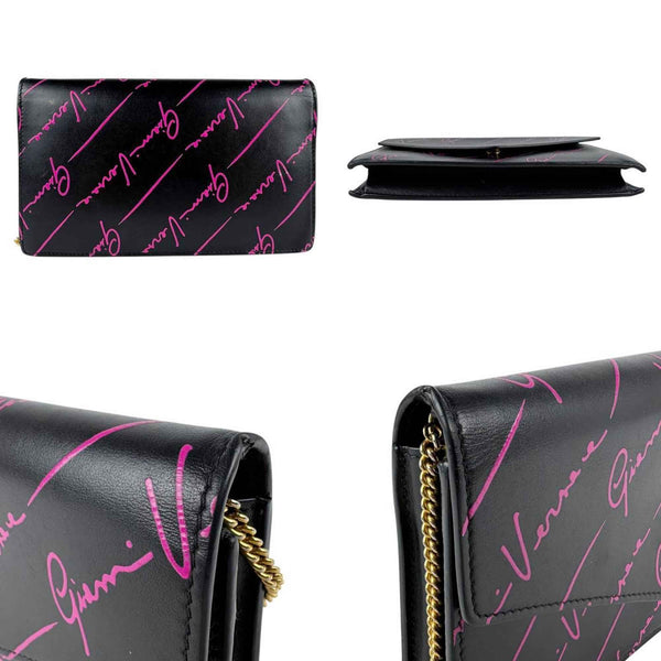 Gianni Versace Women\'s Chain Wallet, Leather, Black and Pink, Z6237