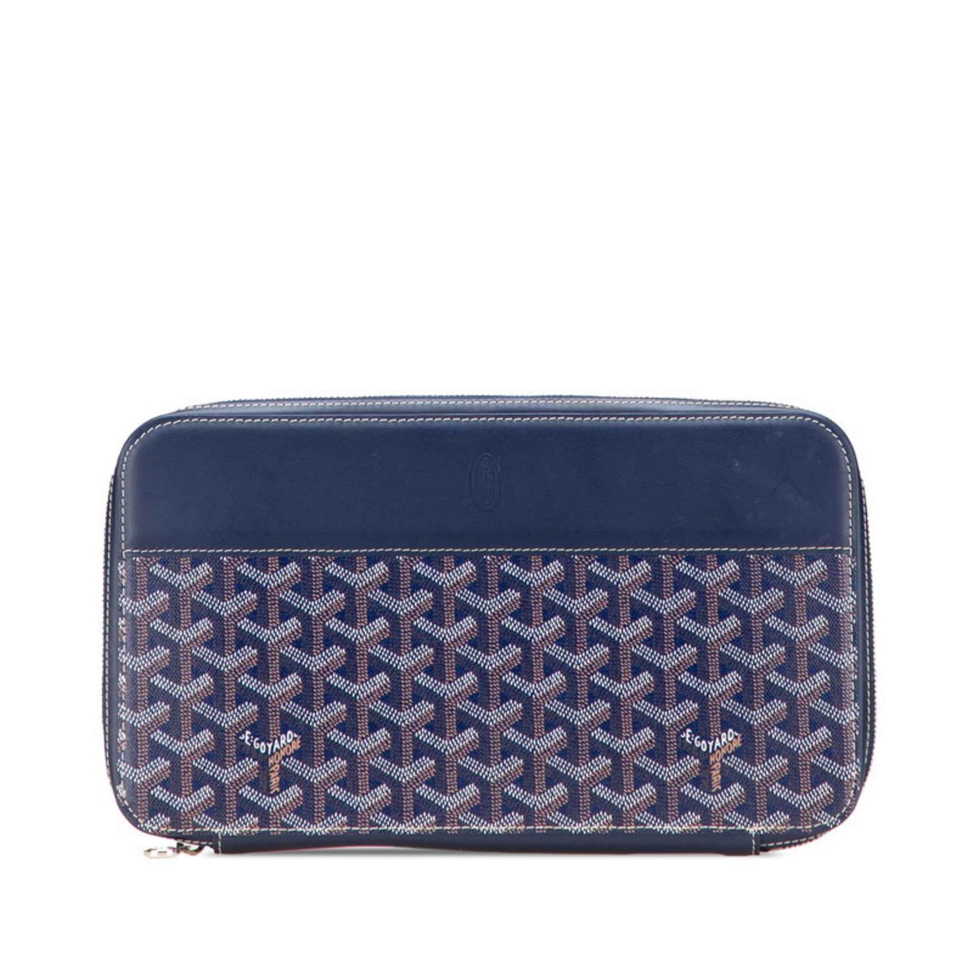 Goyard Herringbone Opera Organizer Travel Case, Document Long Wallet, Navy PVC Leather, Women\'s