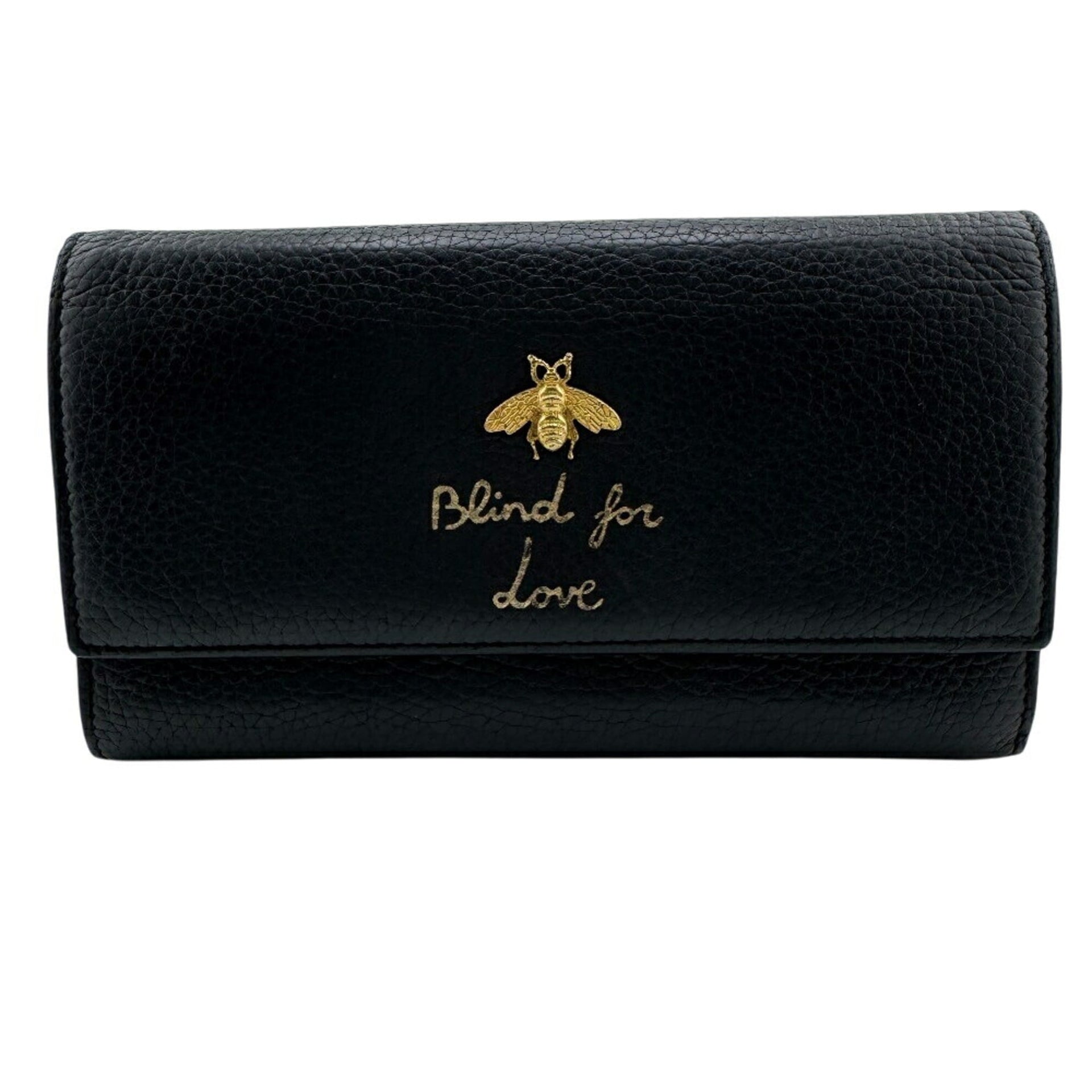 GUCCI 454070 Continental Wallet, Bifold, Bee Animalier Long Black, Women\'s