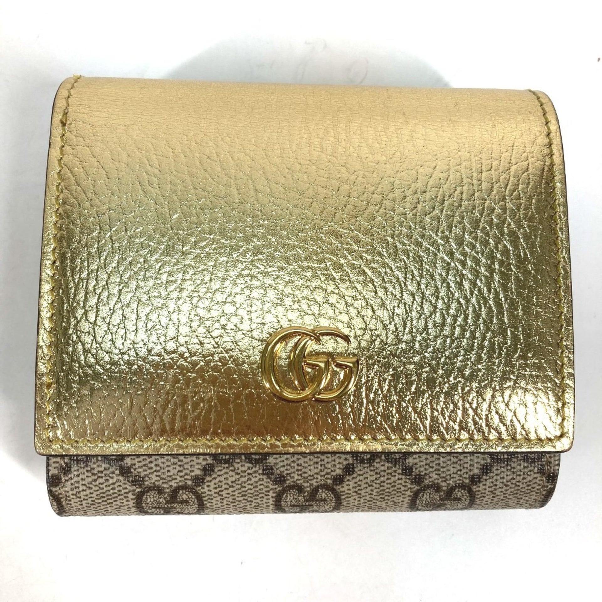 GUCCI 598587 Compact Wallet GG Marmont Bifold Leather Women\'s Gold