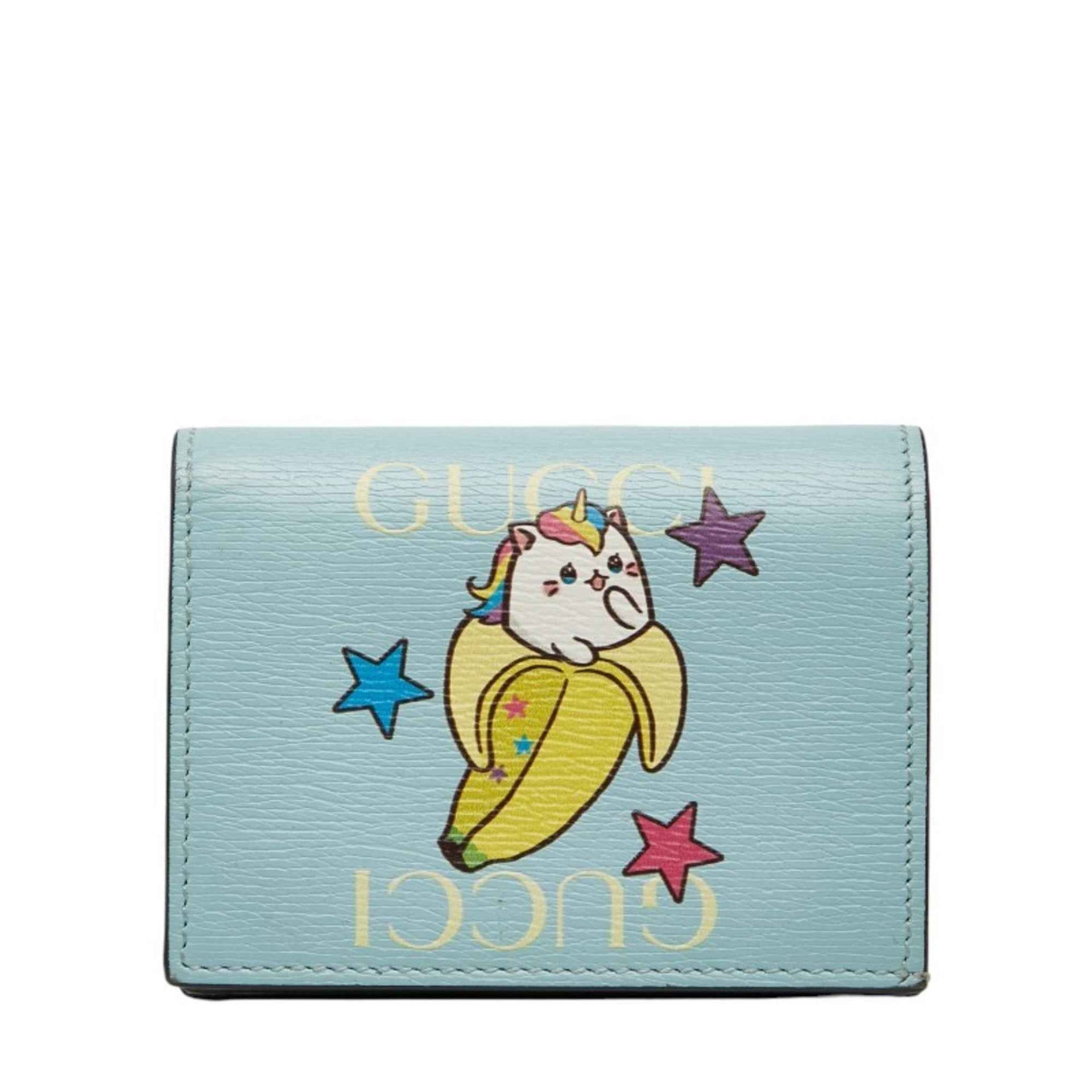 Gucci Bananya Bifold Wallet 701009 Blue Leather Women\'s GUCCI