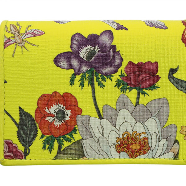 Gucci GUCCI Flora Zumi Compact Neon Yellow 536353 PVCx Leather Women\'s Bifold Wallet
