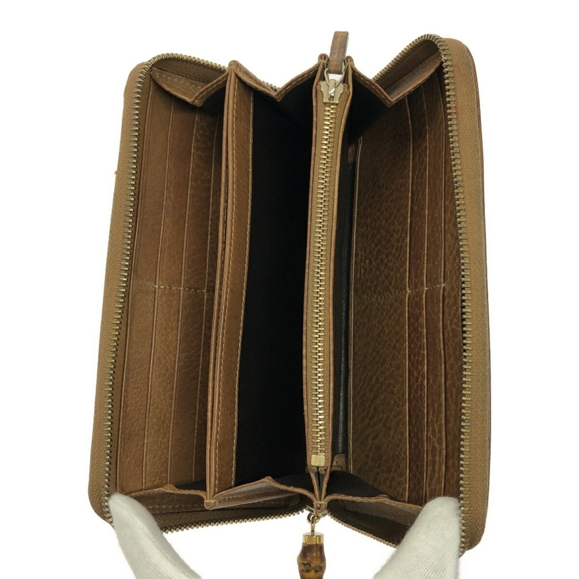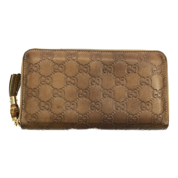GUCCI Gucci Round Long Wallet Bamboo GG Shima Men\'s Ladies 308281 Brown Mikunigaoka Store