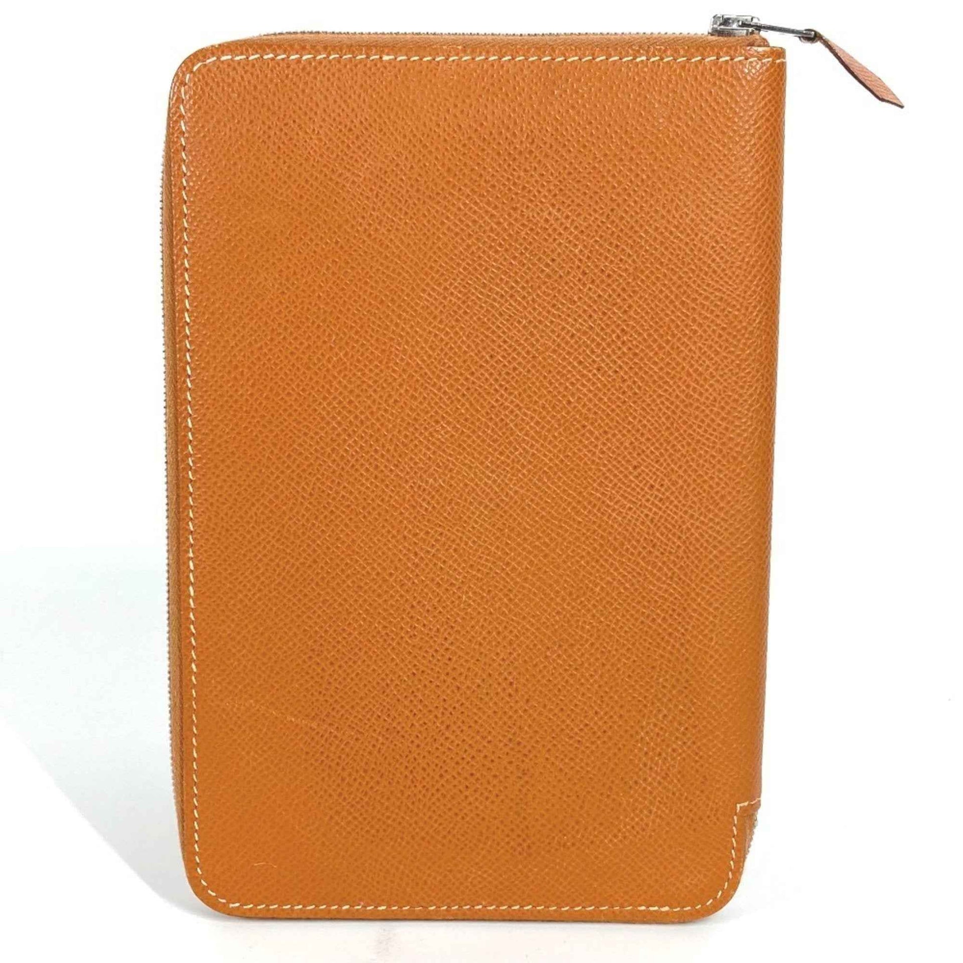 HERMES Azap Combine Long Wallet with Round Zipper Travel Case, Leather, Unisex, Gold