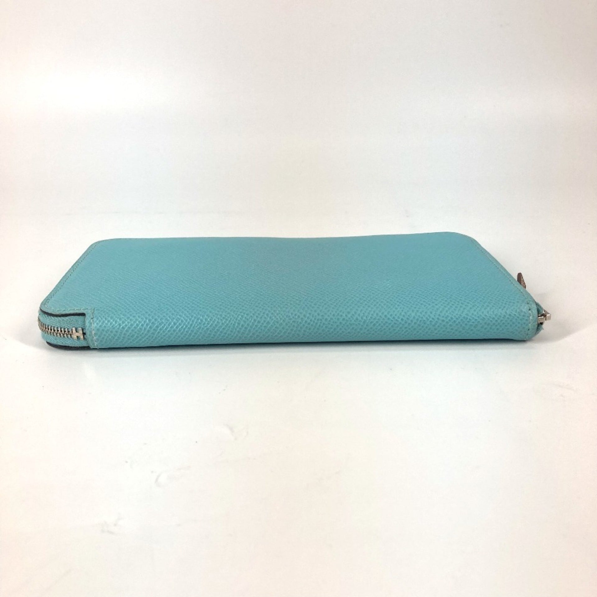 HERMES Azap Long Silk-in Round Zipper Wallet, Epson, Women\'s, Blue Atoll,