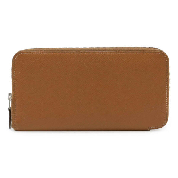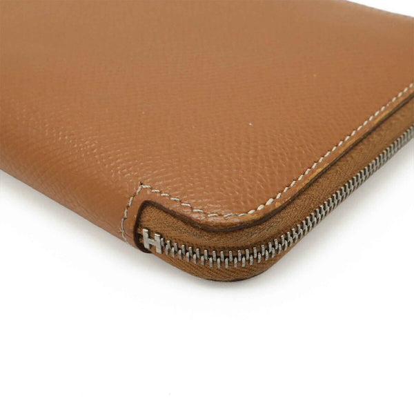 HERMES Azap Long Silkin Round Wallet, Epsom Leather, Gold, Light Brown, Y Stamp
