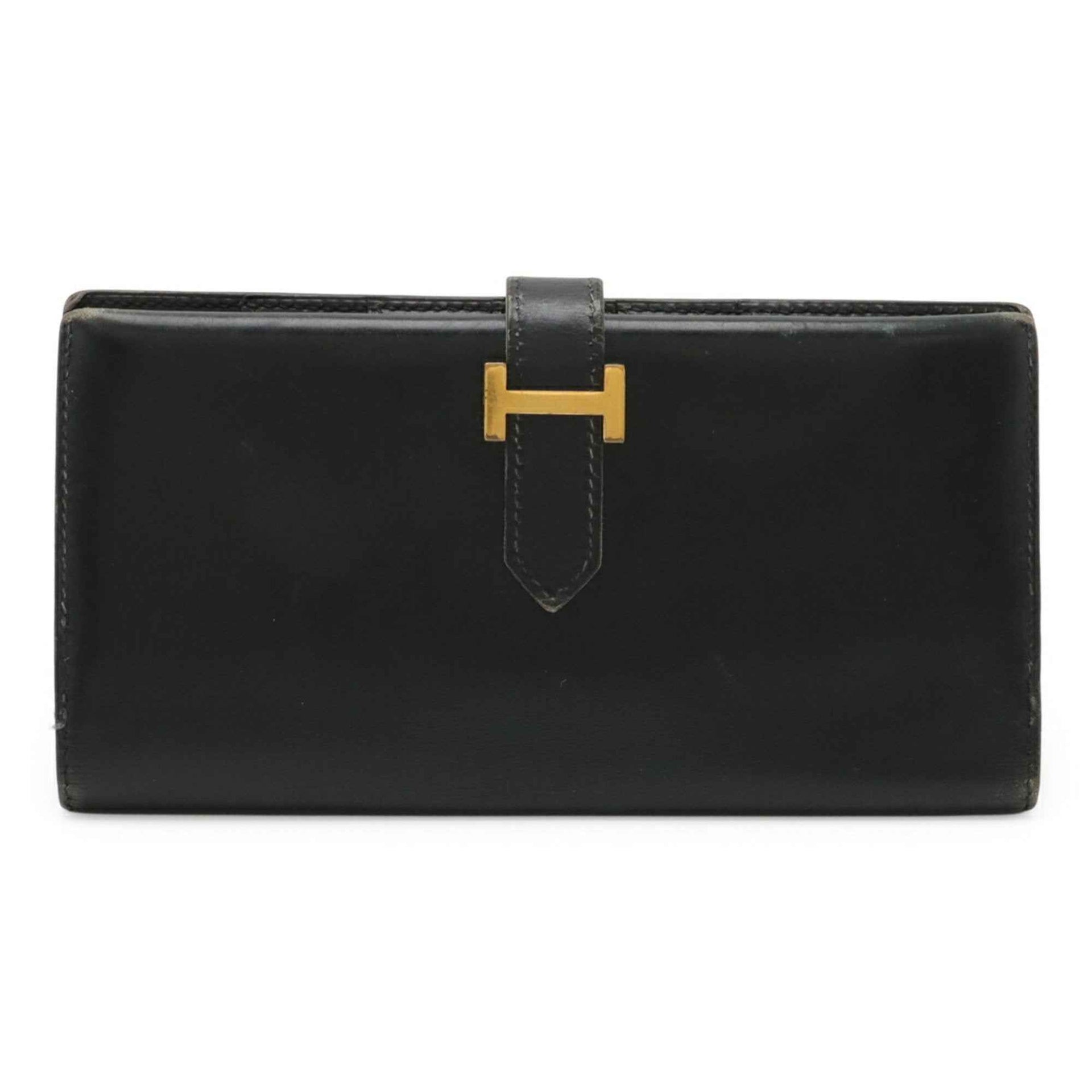 HERMES Bearn Classic Bi-fold Long Wallet in Box Calf Leather, Black, with V Stamp