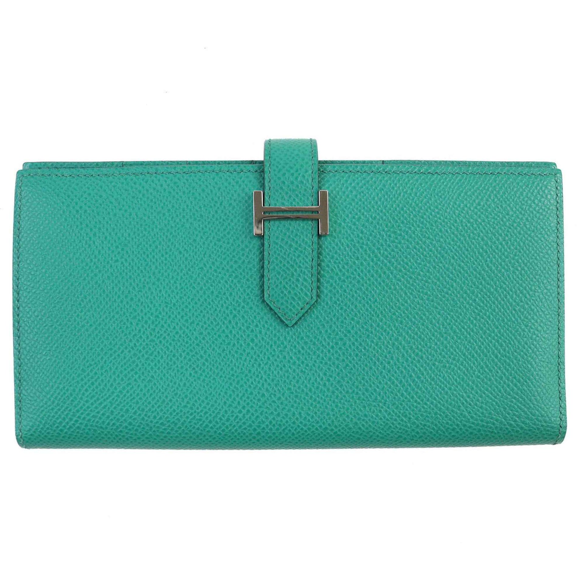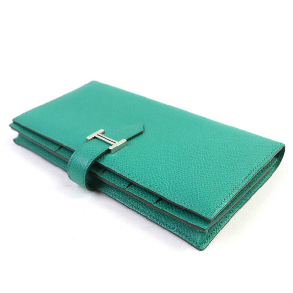 HERMES Bearn Soufflet Long Wallet in Epsom Leather, Vert Jade, Silver Hardware, H Logo, B Stamp, Box Included, Made France, Women\'s