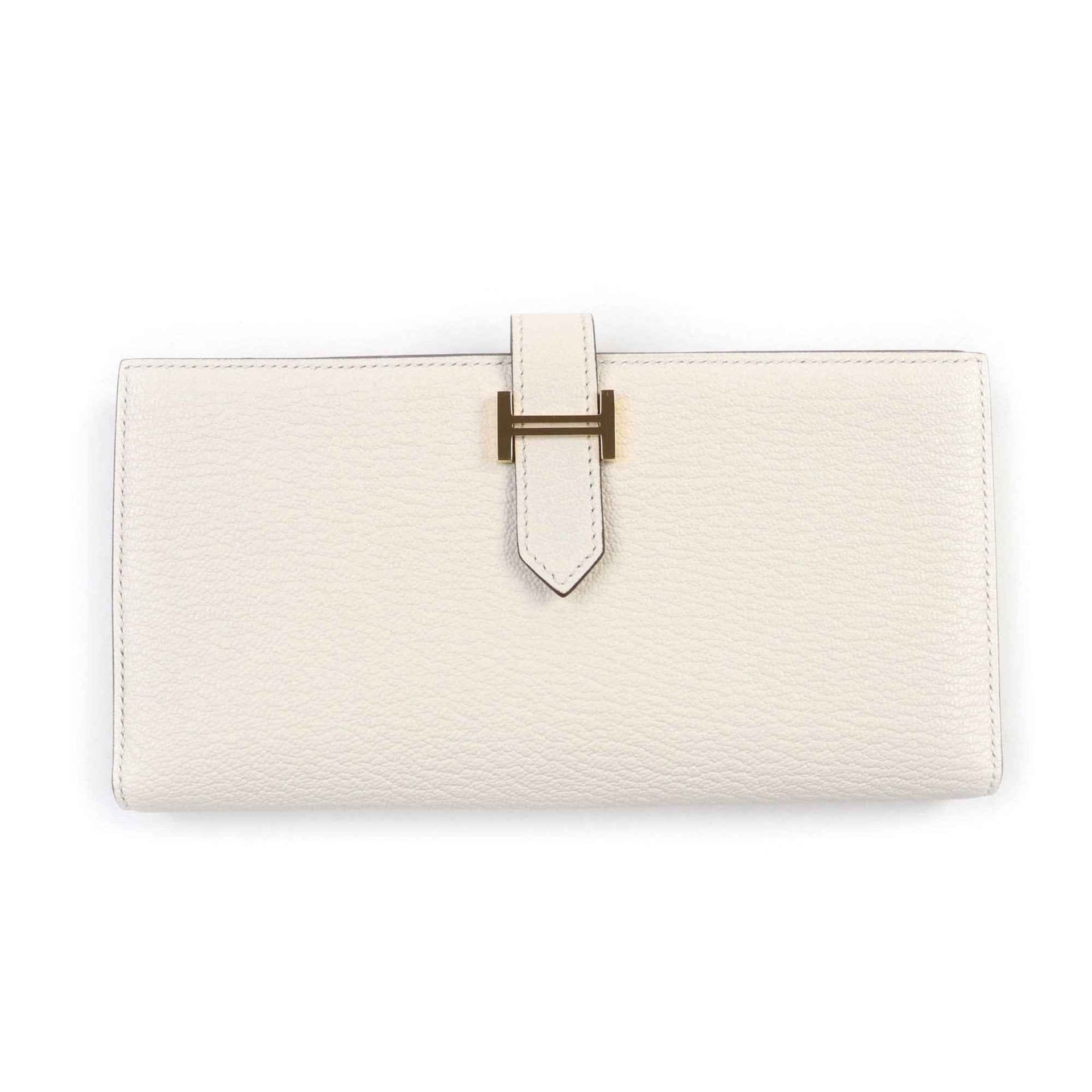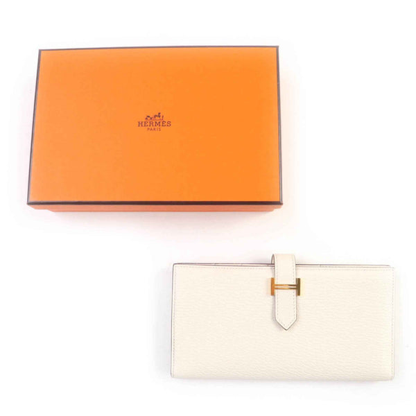 HERMES Bearn Soufflet Nata Chevre Long Wallet with Gold Hardware, U Stamp, Box Included, Made in France, Women\'s