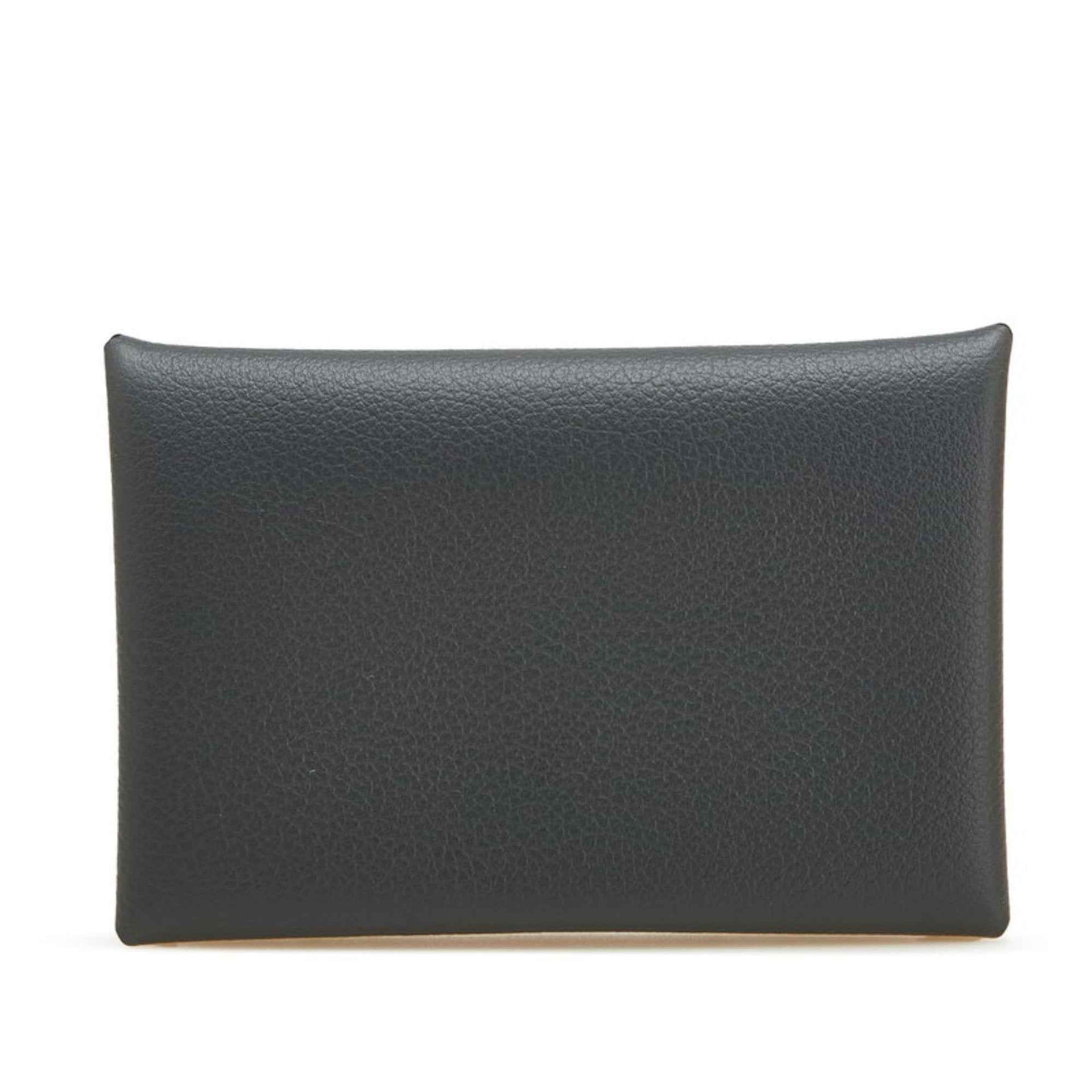 Hermès Calvi Wallet/Coin Case/Business Card Case/Card Case Gray Epsom Leather Women\'s HERMES