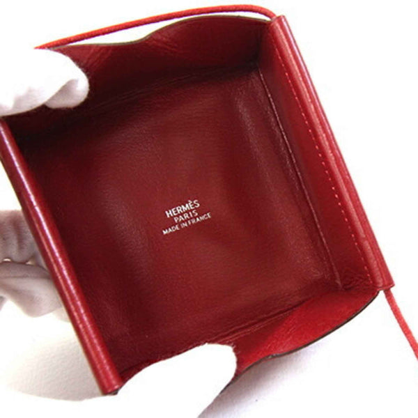 Hermès Coin Case, Belle Ile, Red Leather, □E, 2001, Purse, Neck Wallet, Square, Women\'s, HERMES