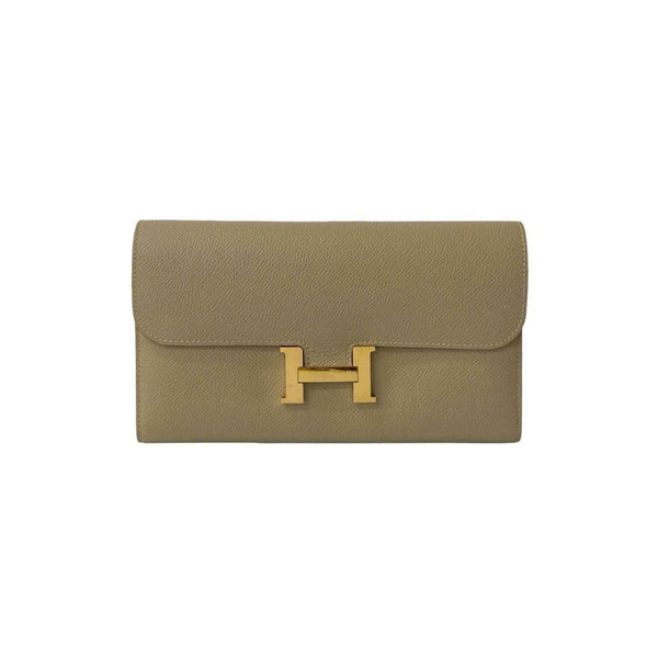 HERMES Constance Long Epsom Leather Wallet with X Stamp, Beige, 95363