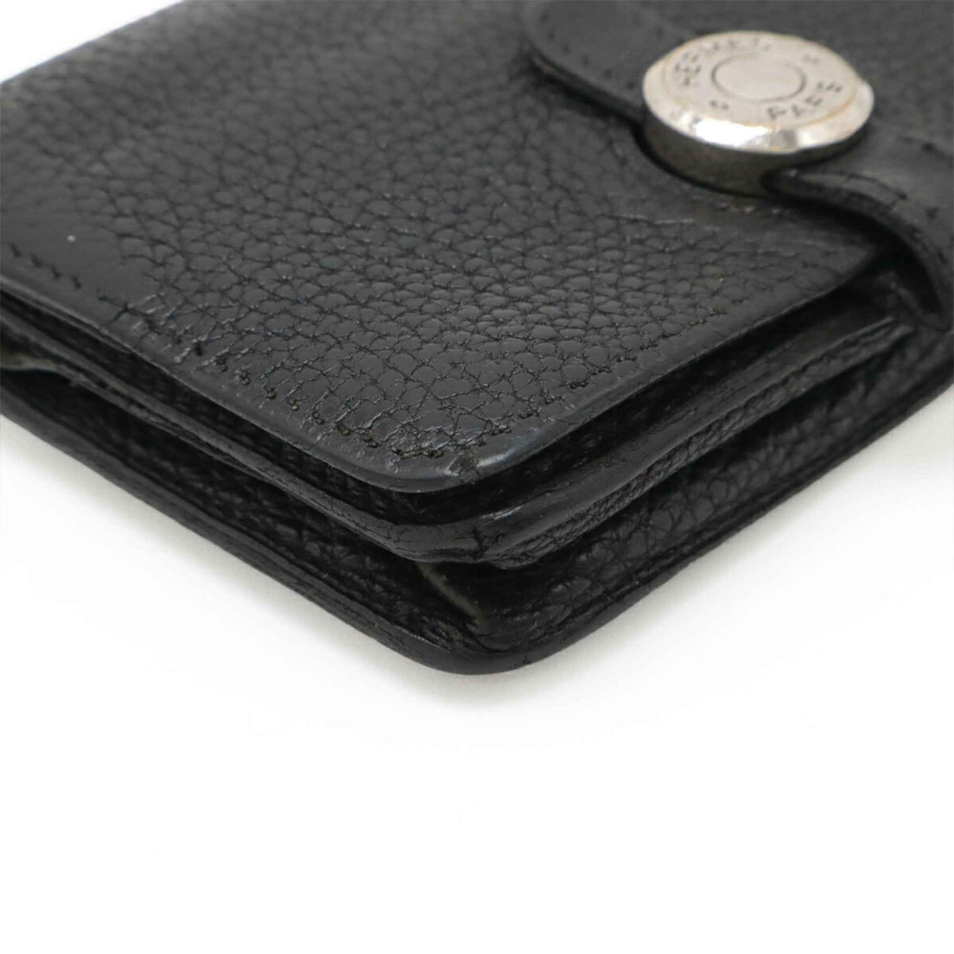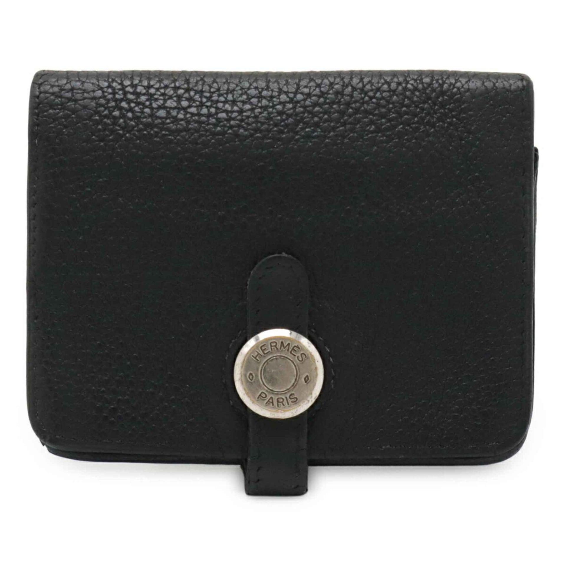HERMES Dogon Compact Coin Case Wallet, Purse, Card Case, Taurillon Clemence Leather, Black, □D Stamp