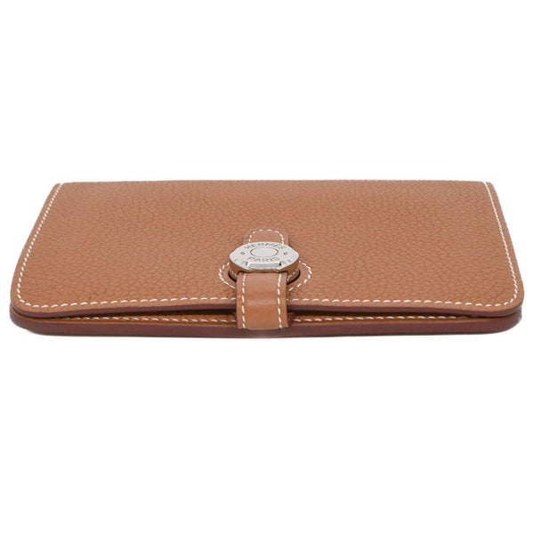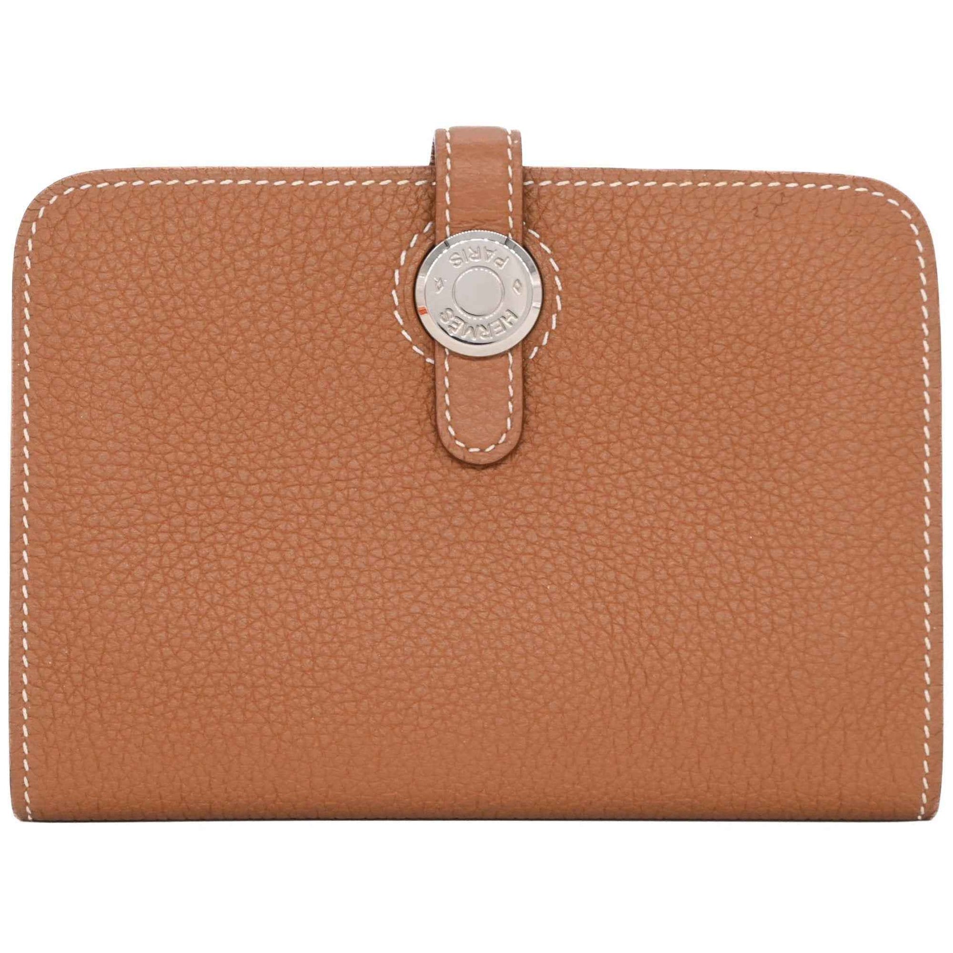 HERMES Dogon Compact Mini Wallet, Bifold Togo Leather, Gold, Men\'s/Women\'s #Z