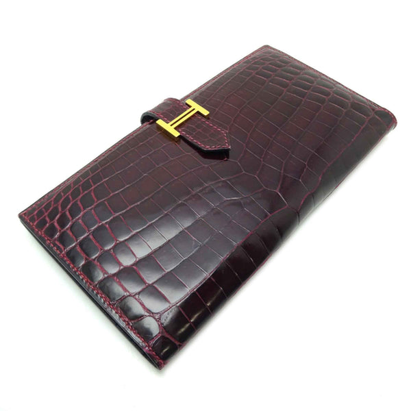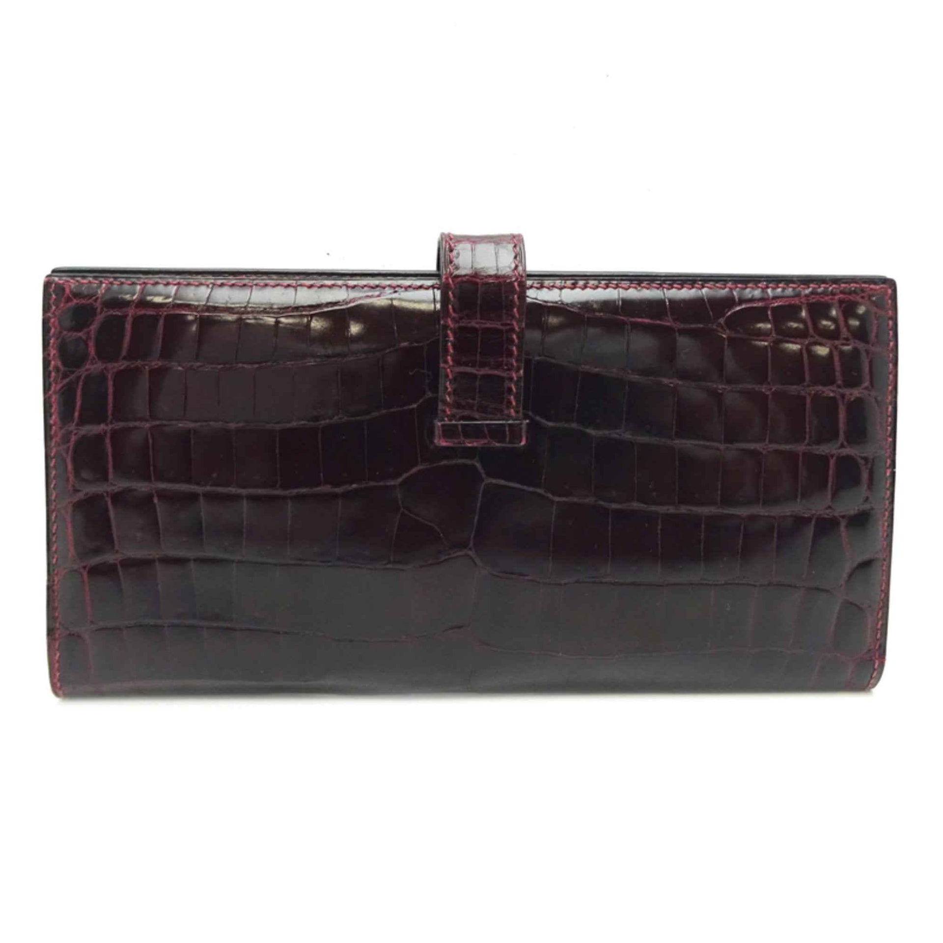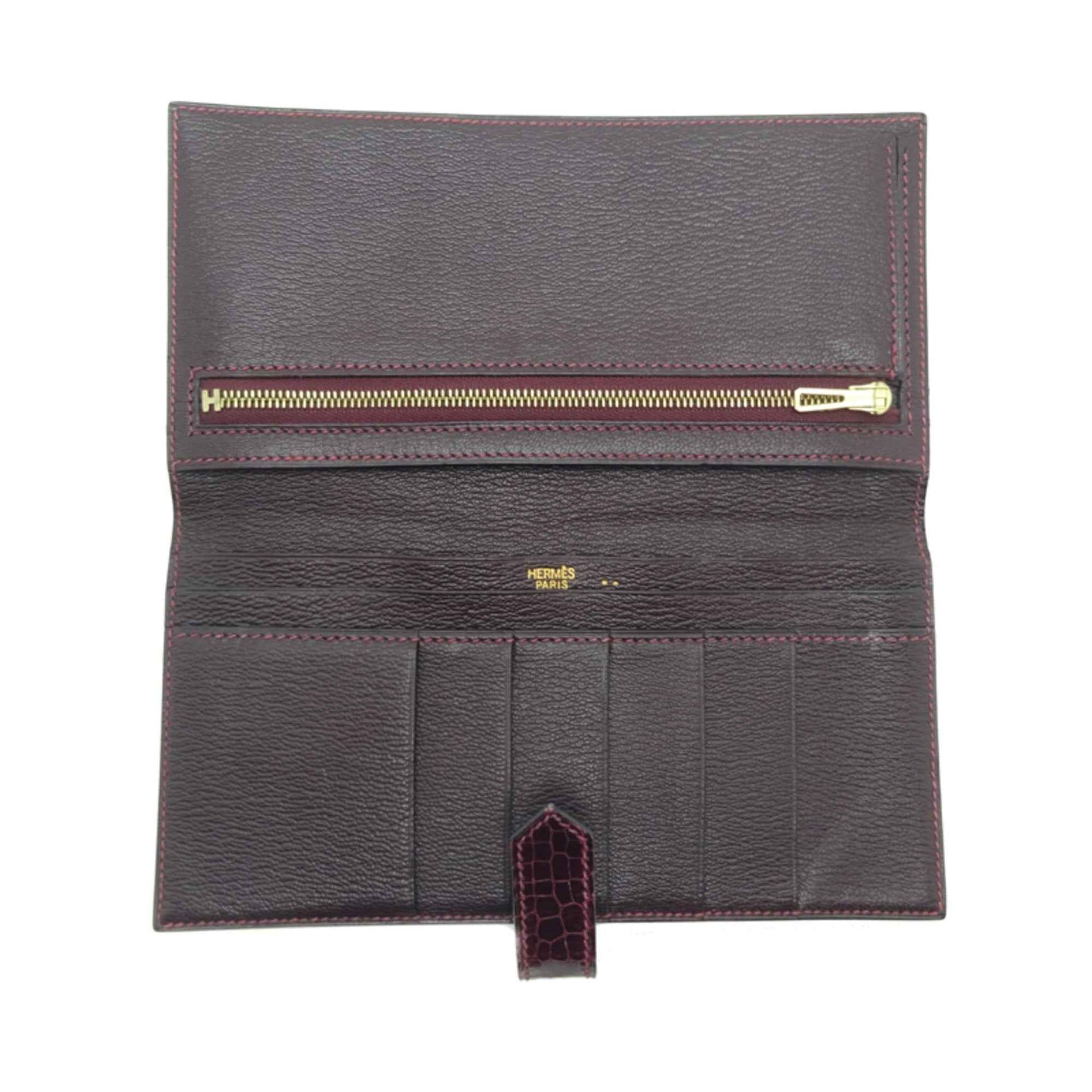 Hermes Hermès Bearn Classic □I Stamp, Made in 2005, Gold Hardware, Women\'s/Men\'s Long Wallet, Niloticus, Bordeaux (Red)