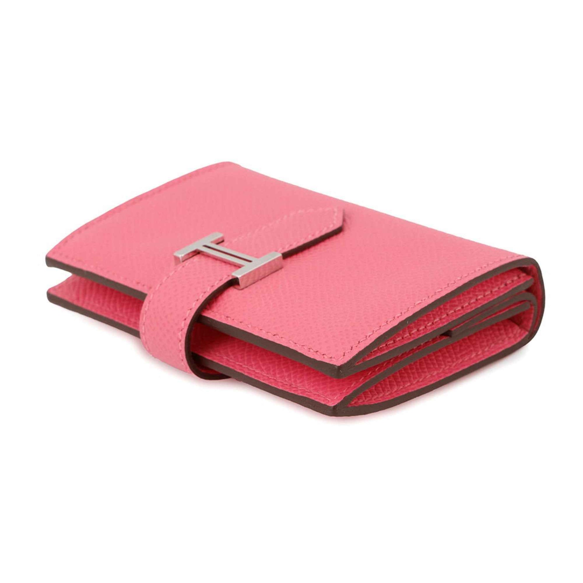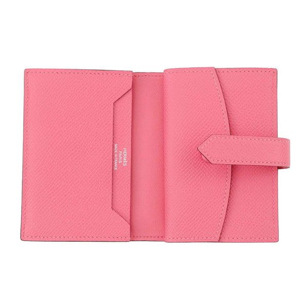 Hermes Hermès Bearn Mini Card Case with Coin Purse, Rose Azalee, Epson, K Stamp, Case, Wallet,