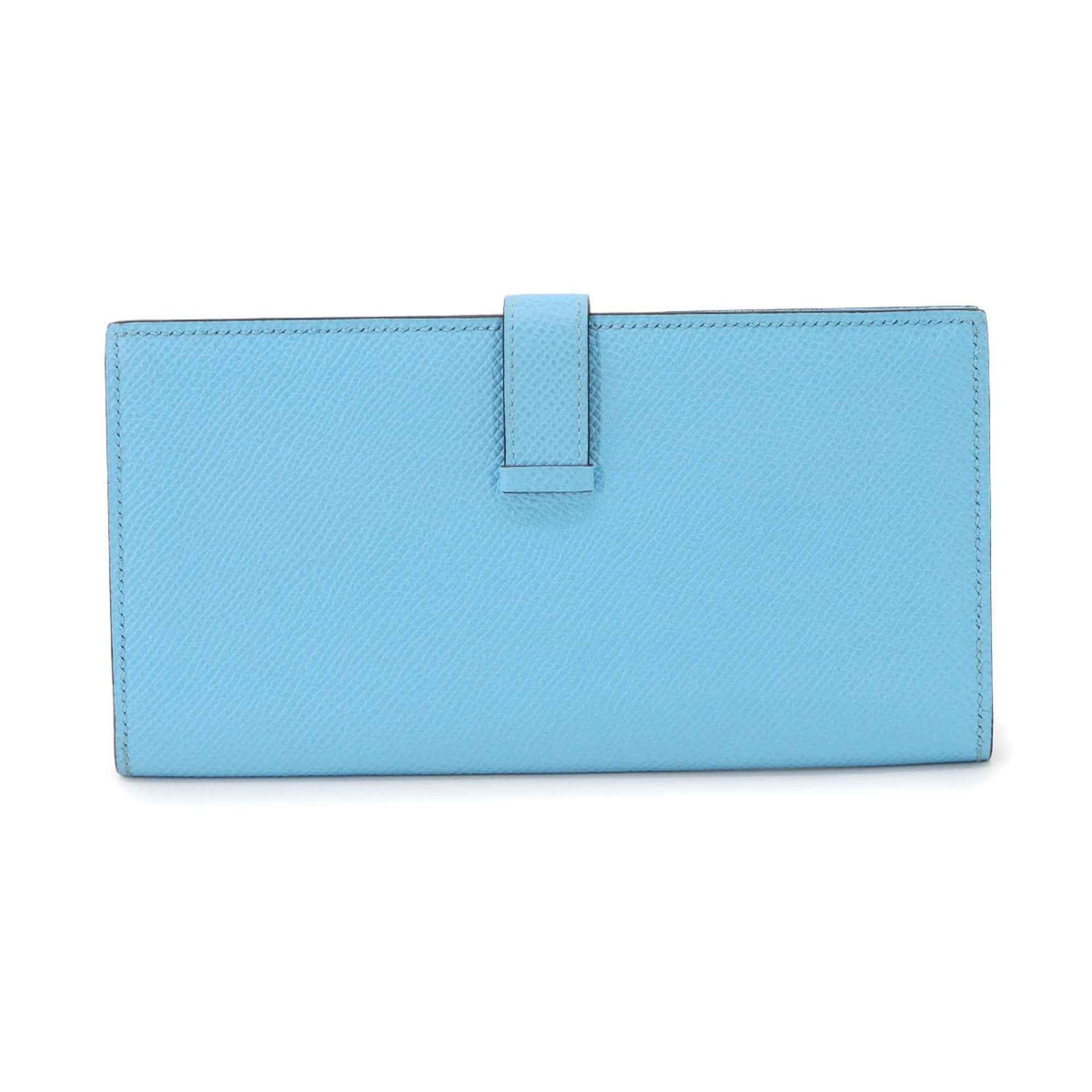 Hermes Hermès Bearn Soufflet Bifold Long Wallet, Epson Celeste, A Stamp, Silver Hardware