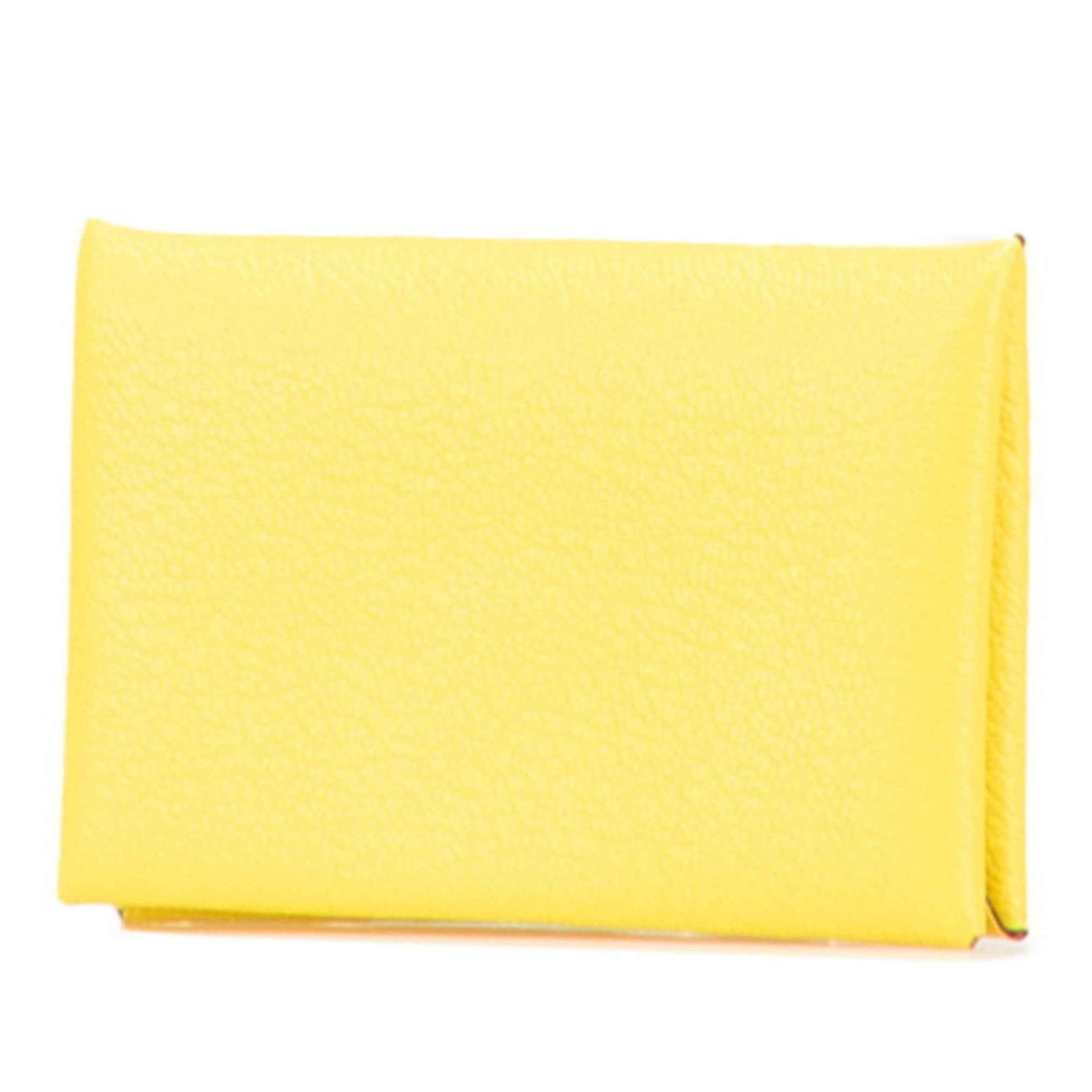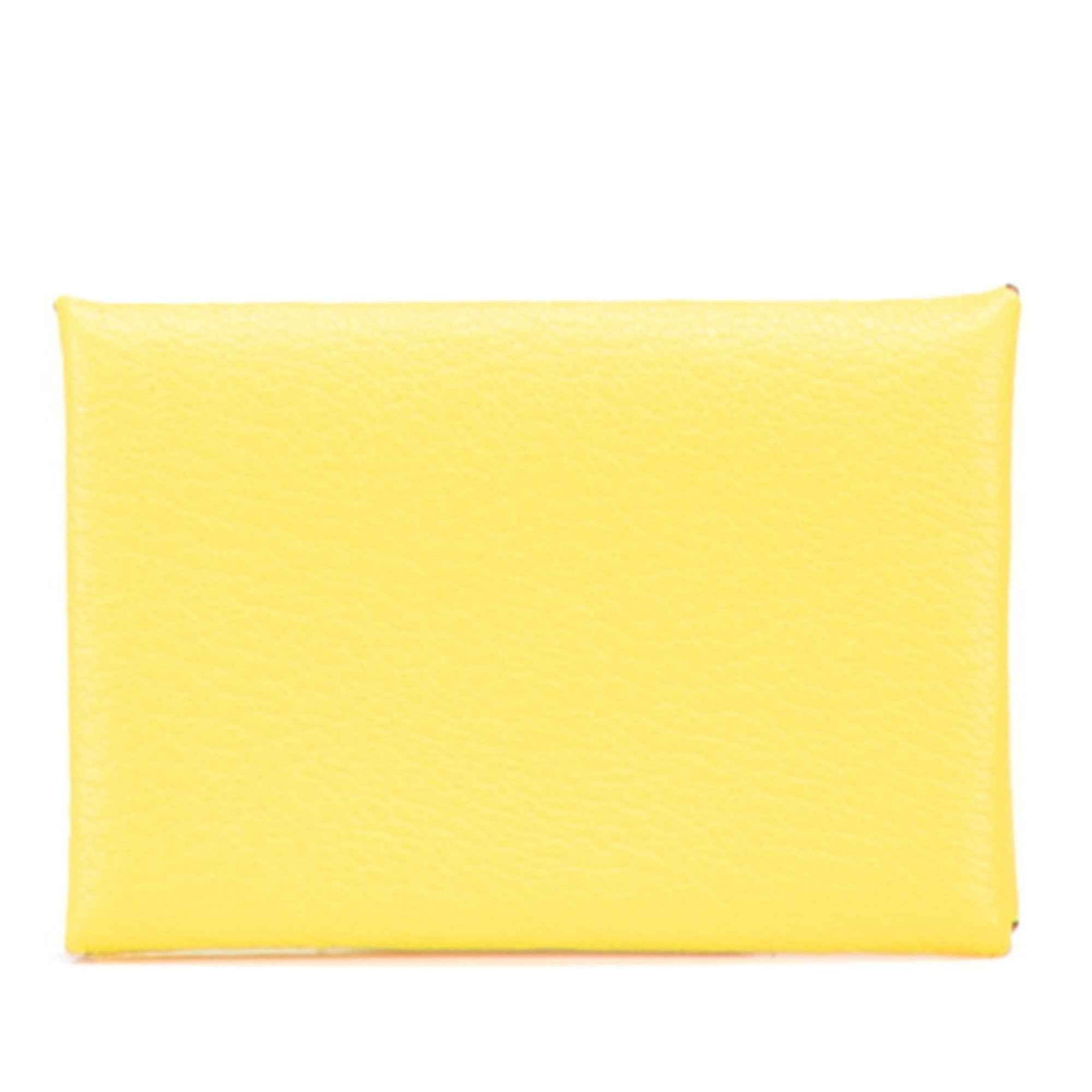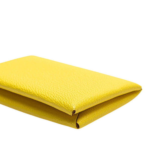 Hermes Hermès Calvi wallet/coin case in lime yellow chevre for women.