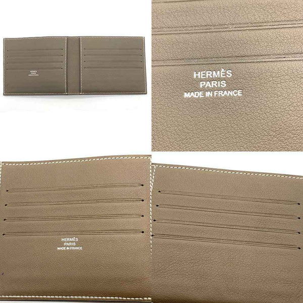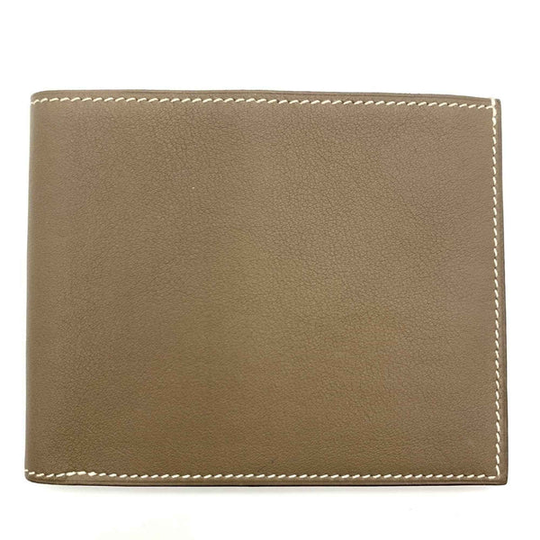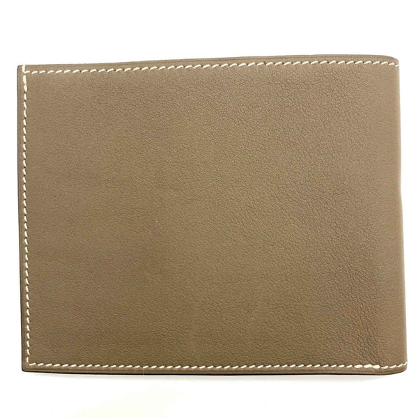 Hermes Hermès Citizen Twill Compact Folding Wallet with Bill Compartment, Stamped R, Made in 2014, Etoupe Leather