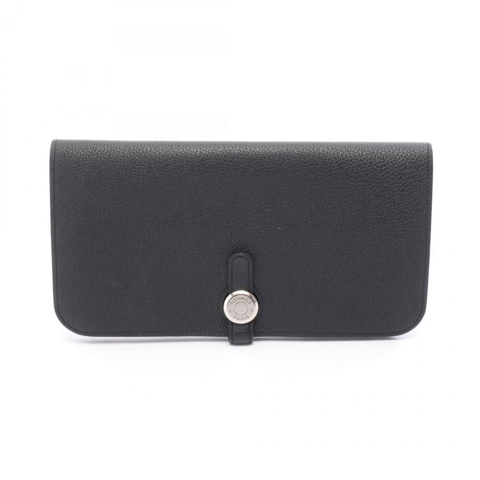 Hermes Hermès Dogon Long Bifold Wallet Leather Togo Women\'s Black
