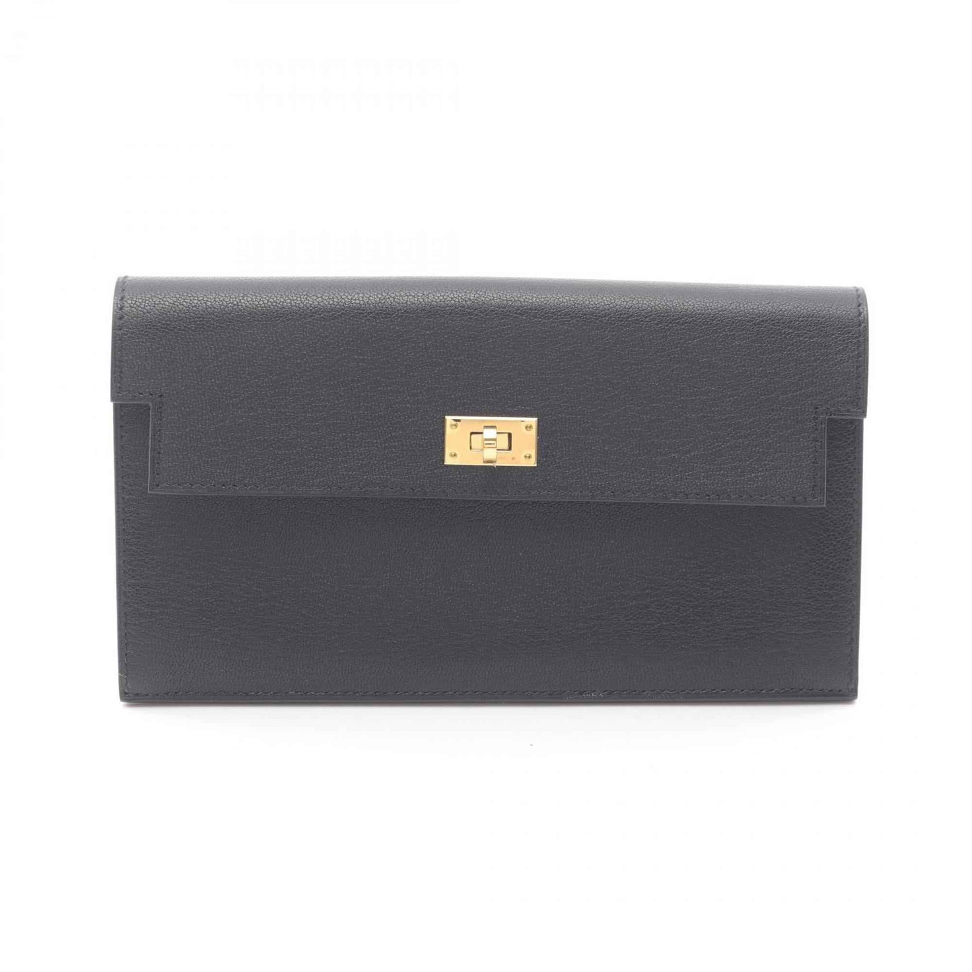 Hermes Hermès Kelly Pocket Long Bifold Wallet, Leather Chevre Sham Killa, Women\'s, Black, H085047CC89