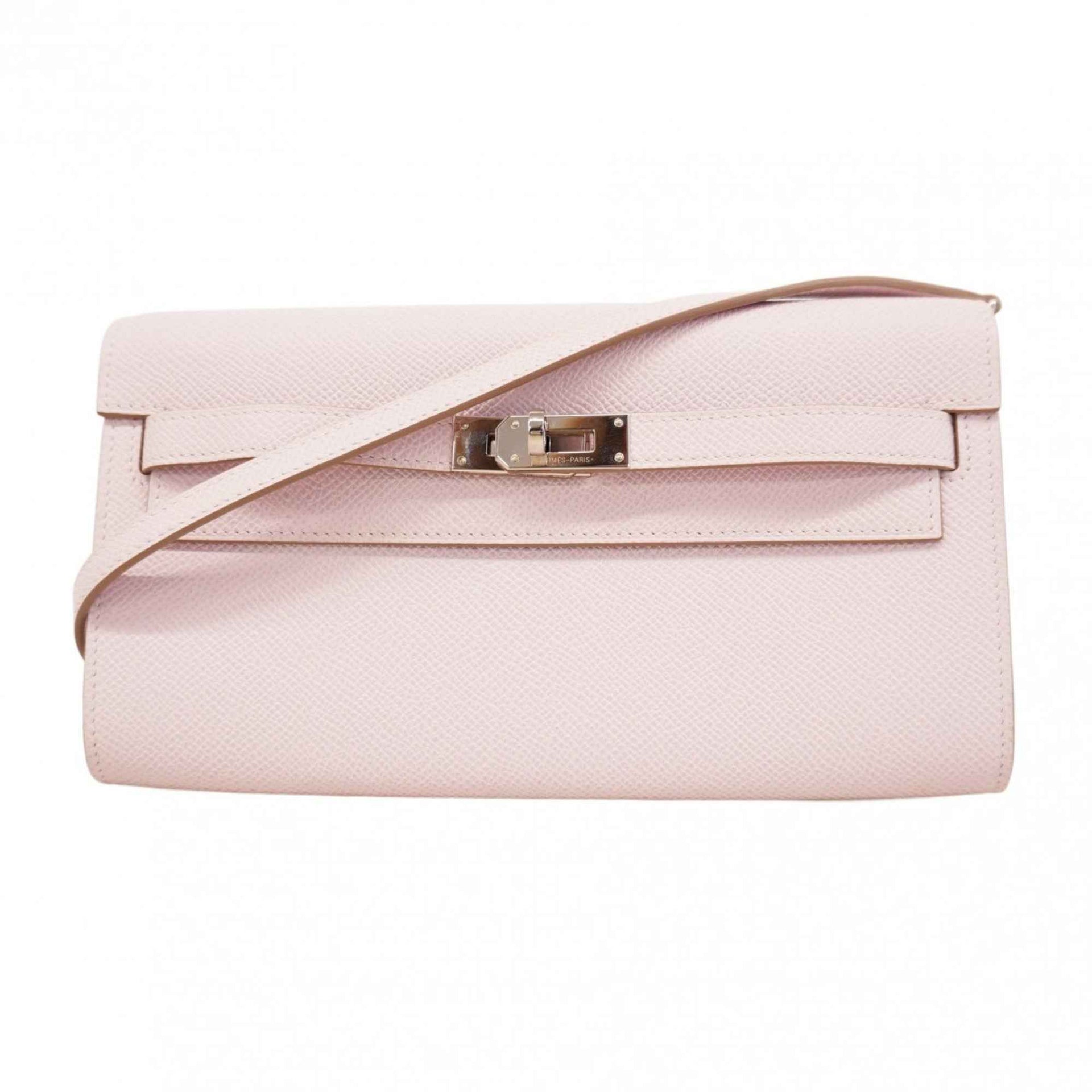 Hermes Hermès Kelly Wallet To-Go Shoulder Wallet, Epsom Leather, Mauve Pale, W Stamp, Women\'s
