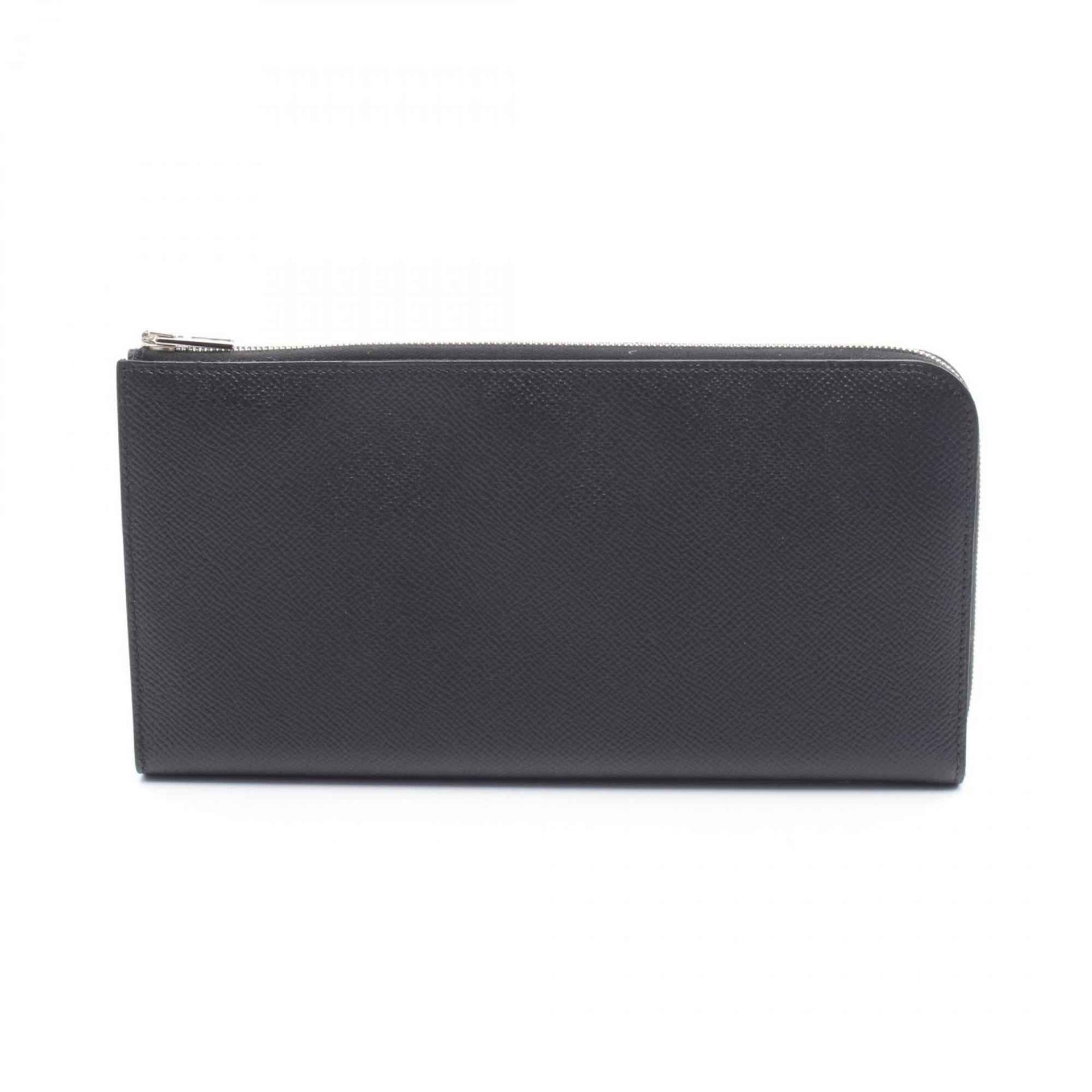 Hermes Hermès Remix Combine L-shaped Zipper Long Wallet, Leather, Epsom Women\'s, Black