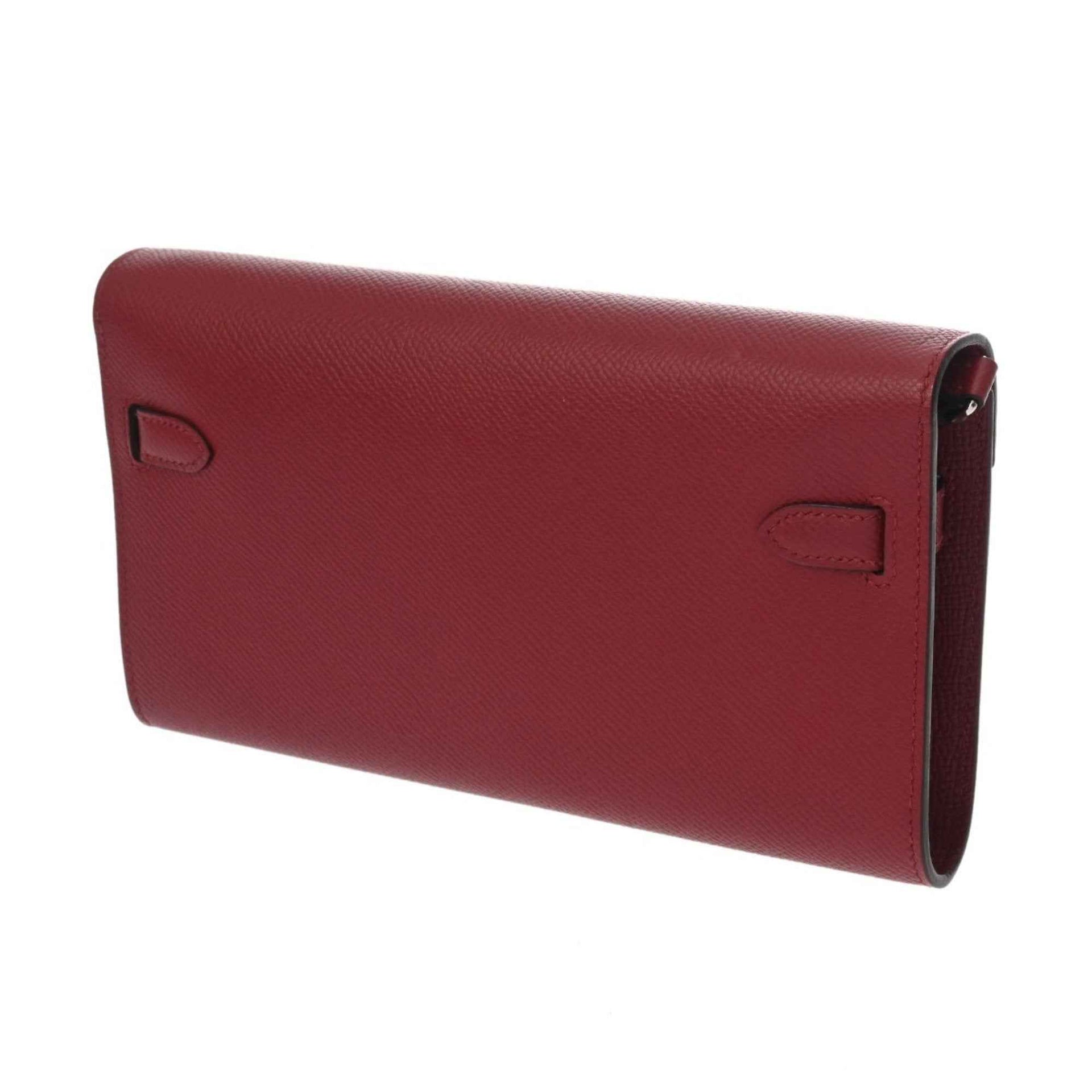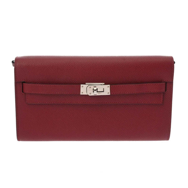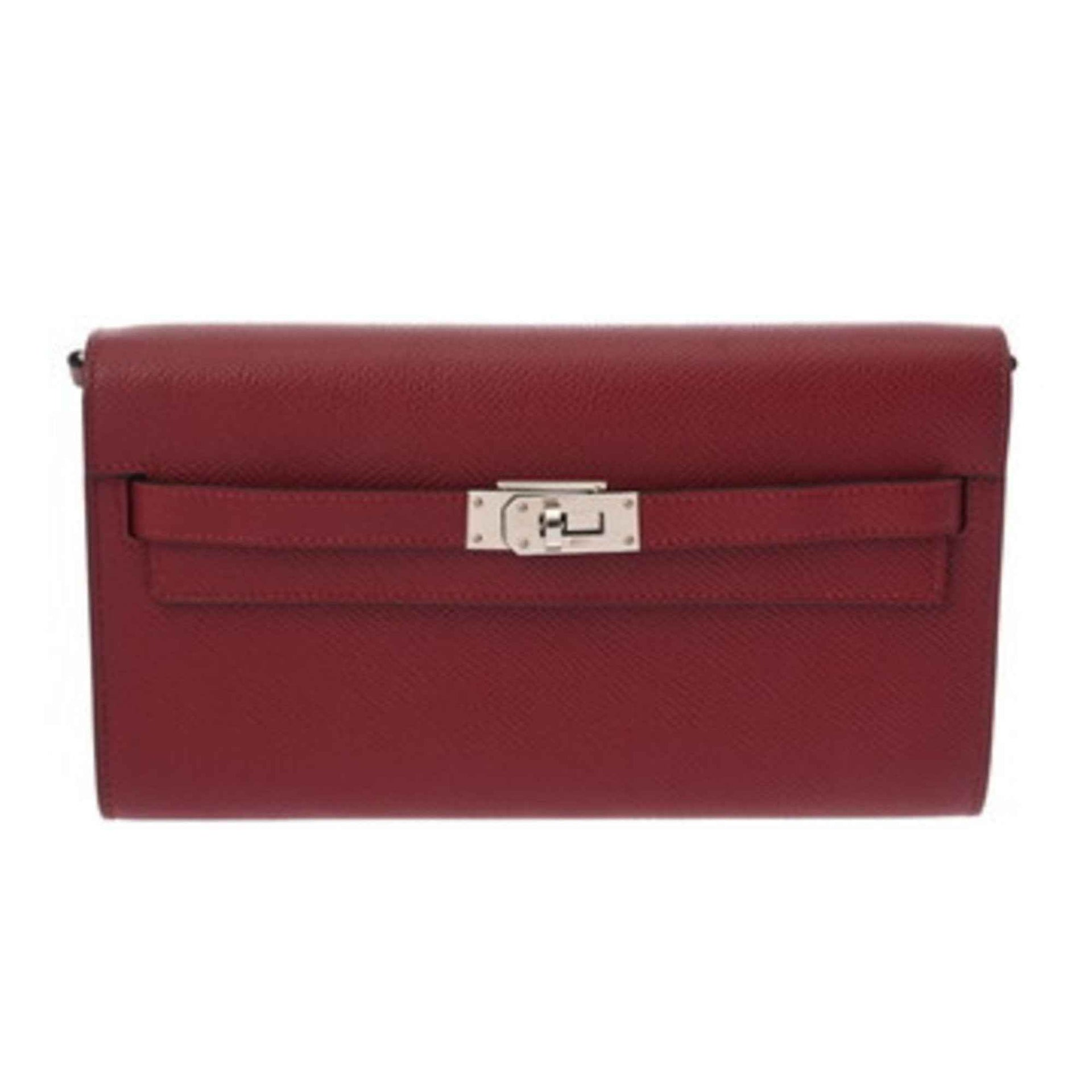 HERMES Kelly Wallet To-Go Rouge Grenat U Stamp (circa 2022) Women\'s Epsom Leather Long Wallet, Rank AB