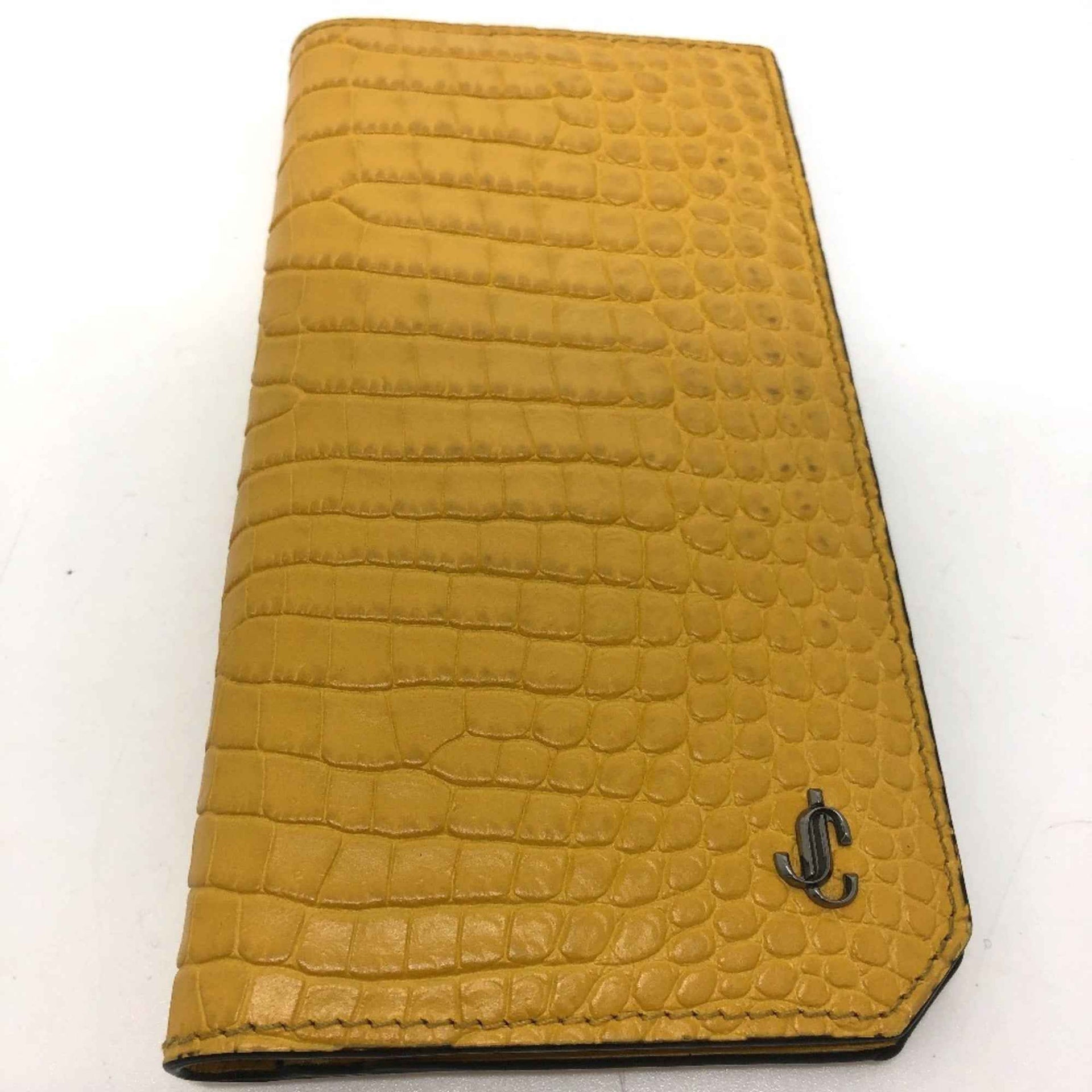 JIMMY CHOO Flap Logo Embossed Wallet, Long Bifold Leather, Women\'s, Yellow