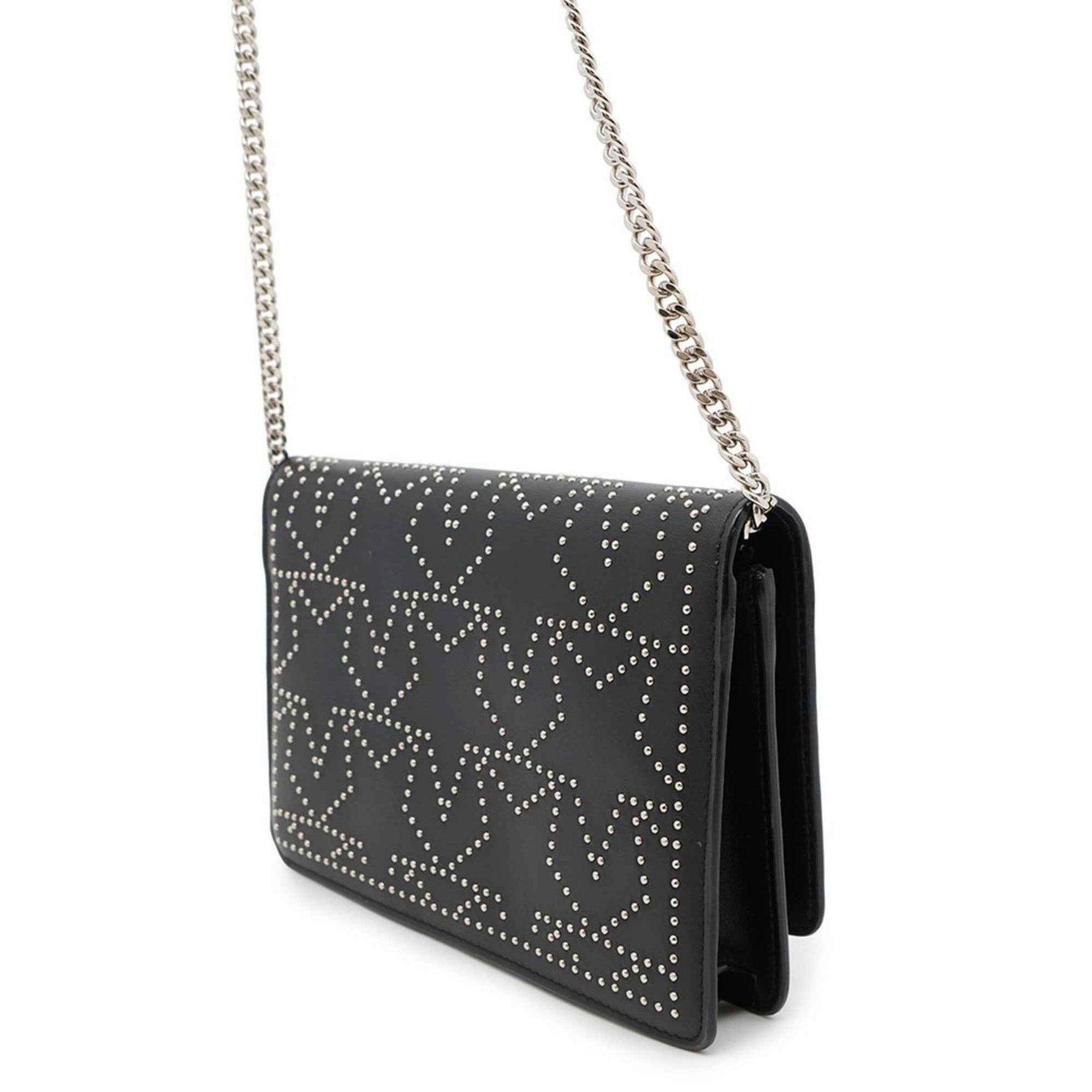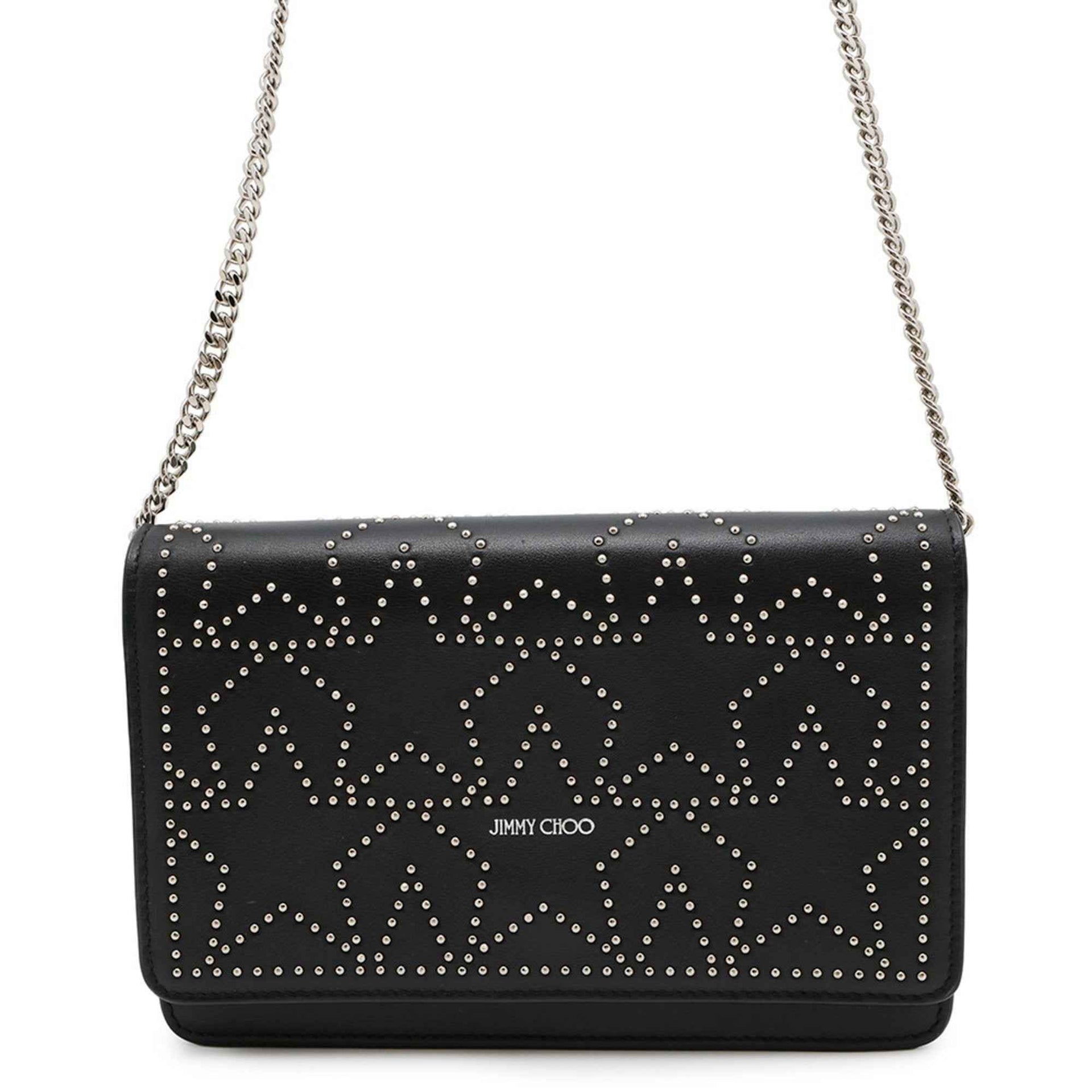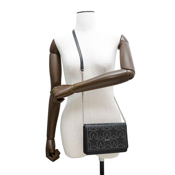 Jimmy Choo Star Leather Chain Wallet, Black,