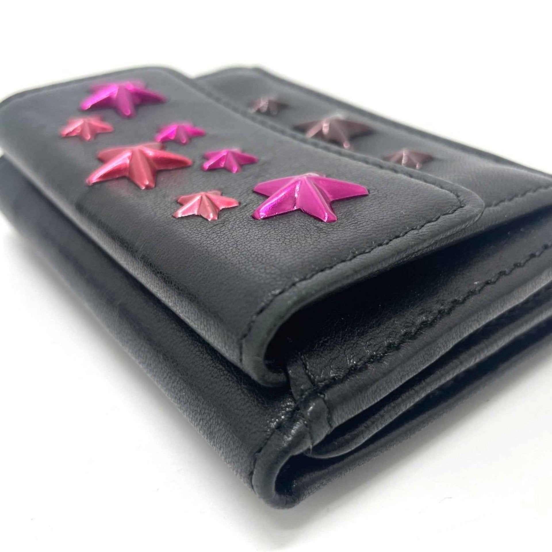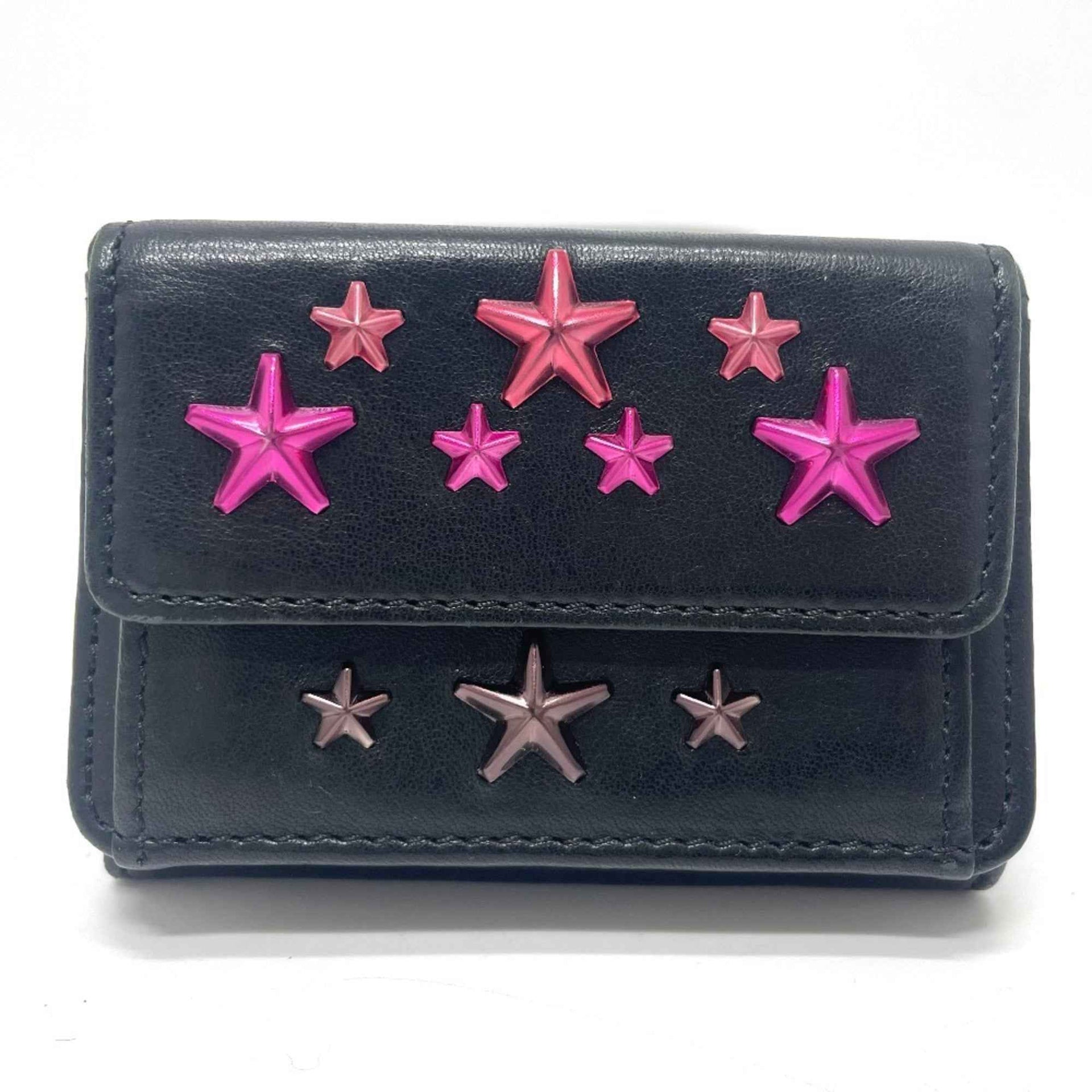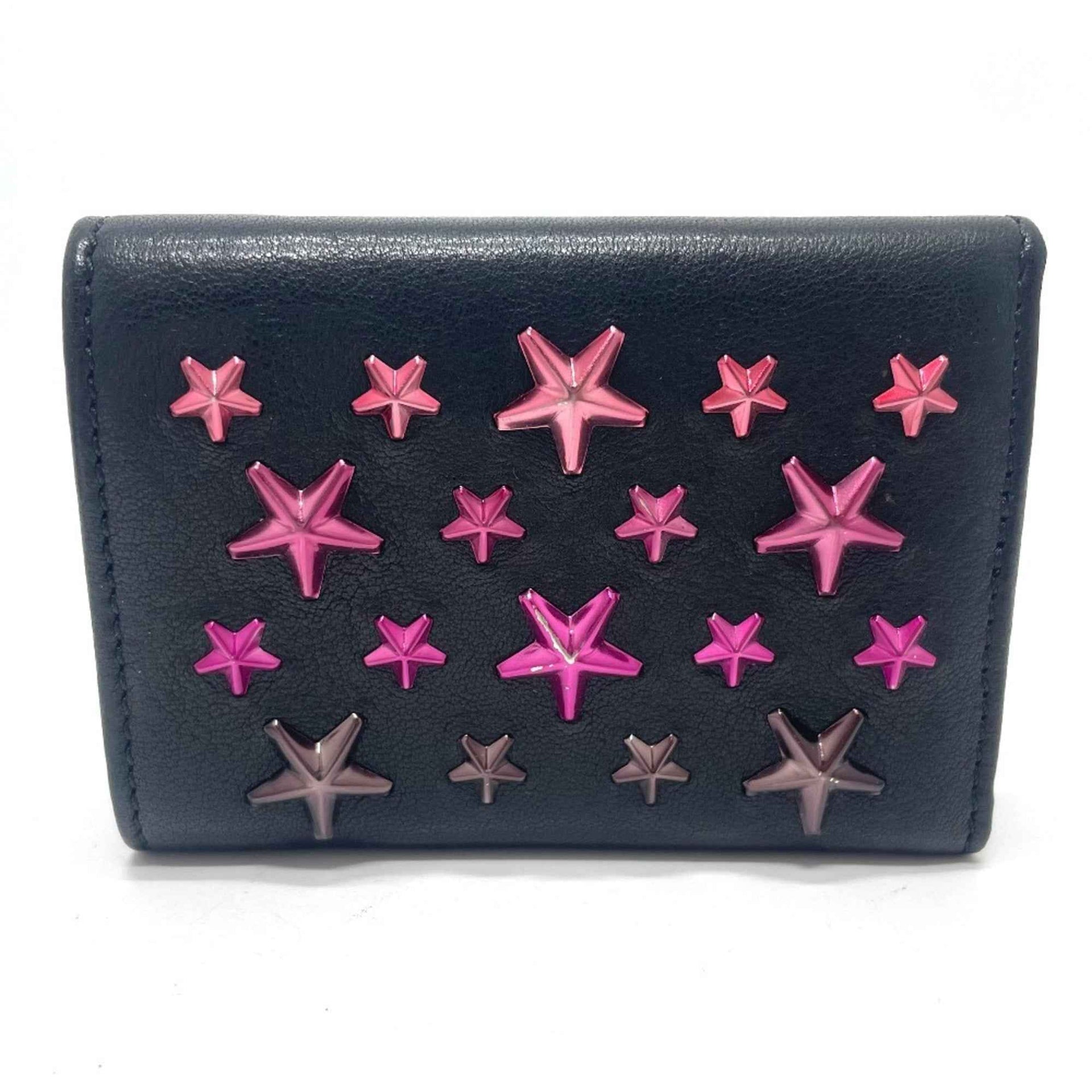 JIMMY CHOO Star Stud Wallet, Compact Mini Tri-fold Leather Women\'s, Black
