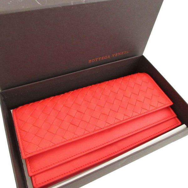 Like new Bottega Veneta Intrecciato 143305 leather red bi-fold long wallet 0337BOTTEGA VENETA