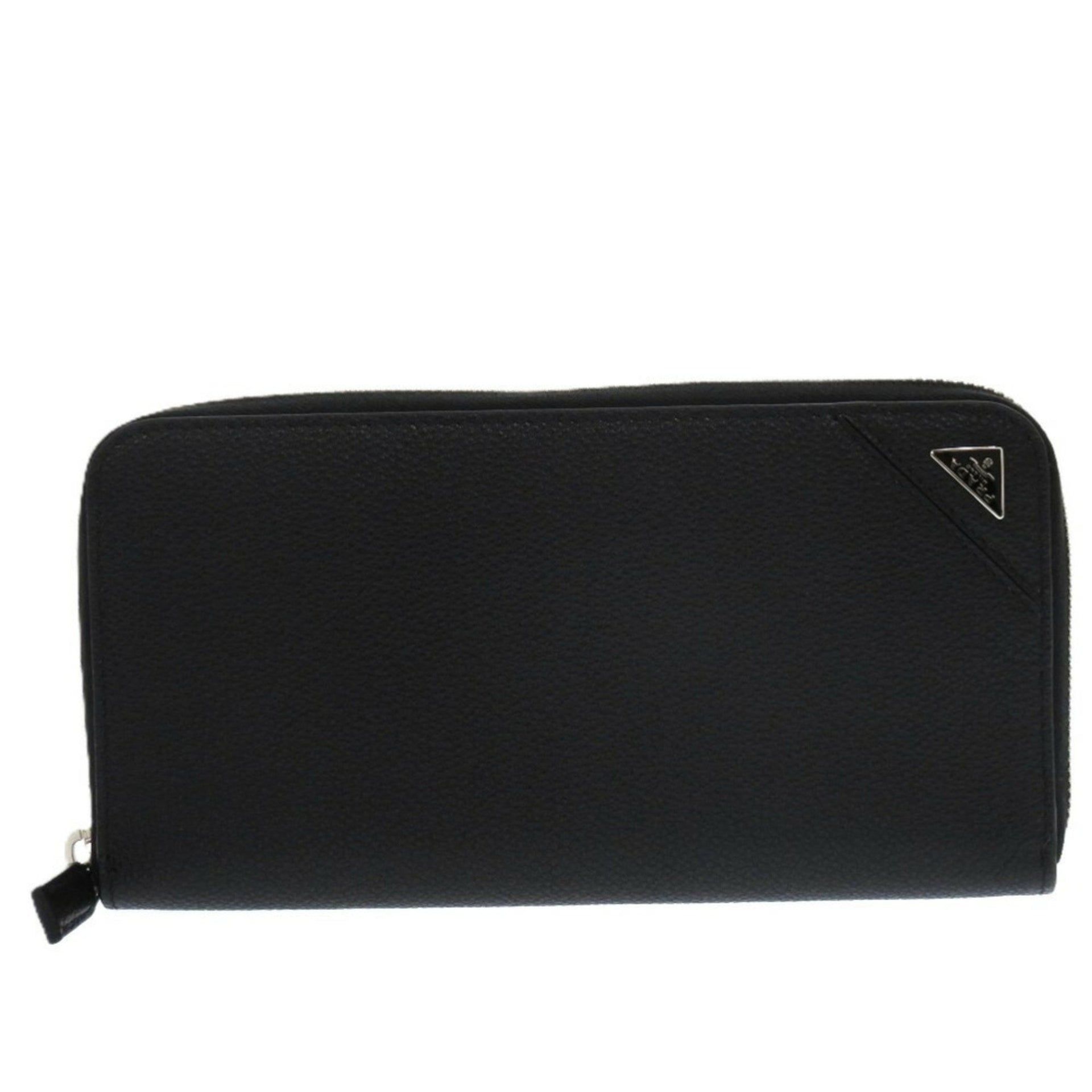 Like new Prada Soft Calfskin Triangle 2ML317 Leather Black 0781 Long Wallet