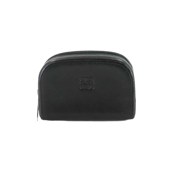 LOEWE Anagram Coin Purse, Black Leather with Silver Hardware