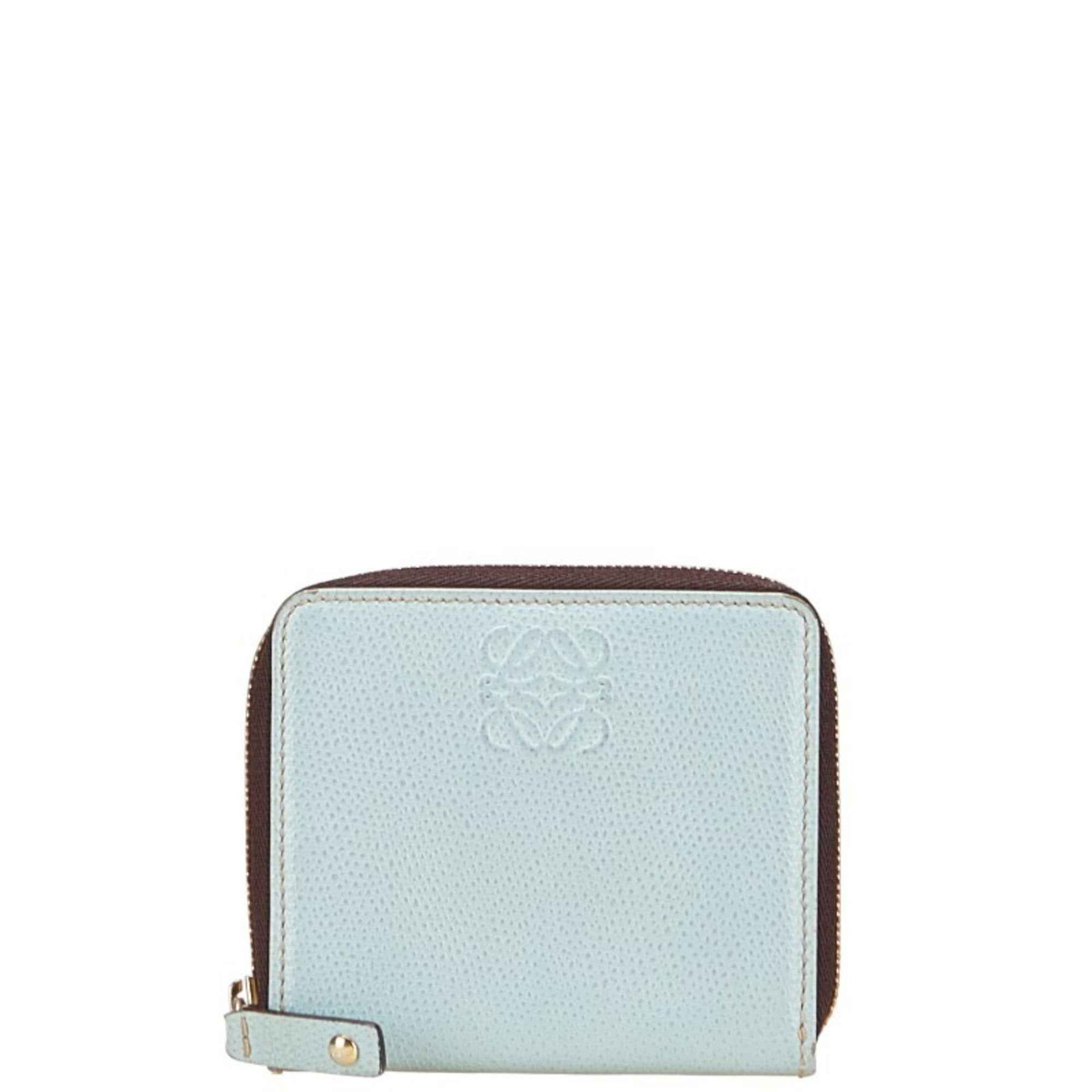 LOEWE Anagram Logo Wallet/Coin Case, Round Zipper, Blue/Brown Leather, Women\'s
