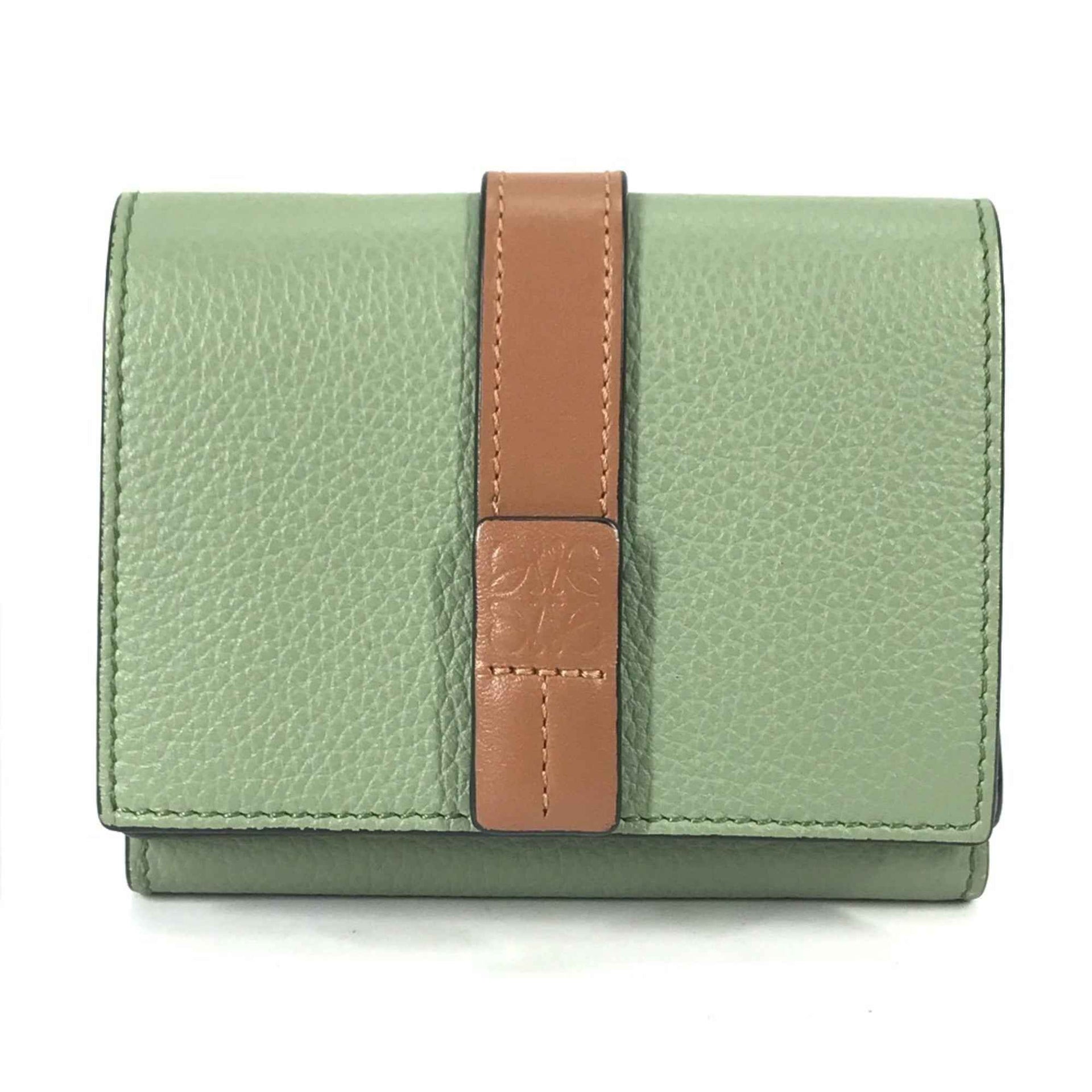 LOEWE Anagram Small Vertical Wallet, Compact Tri-fold Leather Women\'s, Green